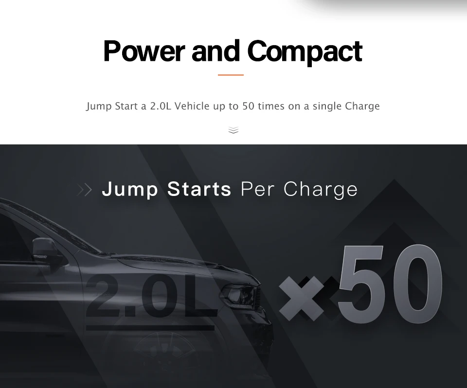 Поділюсь своїм досвідом. Працюю в автохаусі Б/У авто. Близько 60-80 авто на стоянці і в 15% проблеми з акумуляторами. важливе уточнення - всі авто ДИЗЕЛЬНІ. Маю хороший потужний бустер за 500євро, але він важить близько 7кг, а стоянка від офісу далеко - не хочеться волочити так далеко. Купив першу версію цього бустера на 11.000mAh - відпрацювала два роки без нарікань, але Більше ніж 2.2дизель з дуже посаженим акумулятором - не заведе. Тому вирішив придбати нову версію - потужнішу. Користуюсь два місяці. Завів кілька бусів і близько 25-ти авто(ще раз наголошую що всі авто в нас дизельні), Деякі з першого разу не завелись. Тоді підключаю бустер, нажимаю на пуск і чекаю 30сек, потім знову на пуск і можна пробувати заводити або повторити процедуру ще раз. Загалом я дуже задоволений.