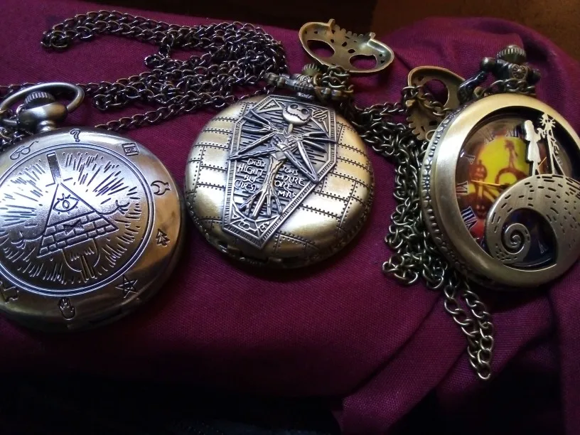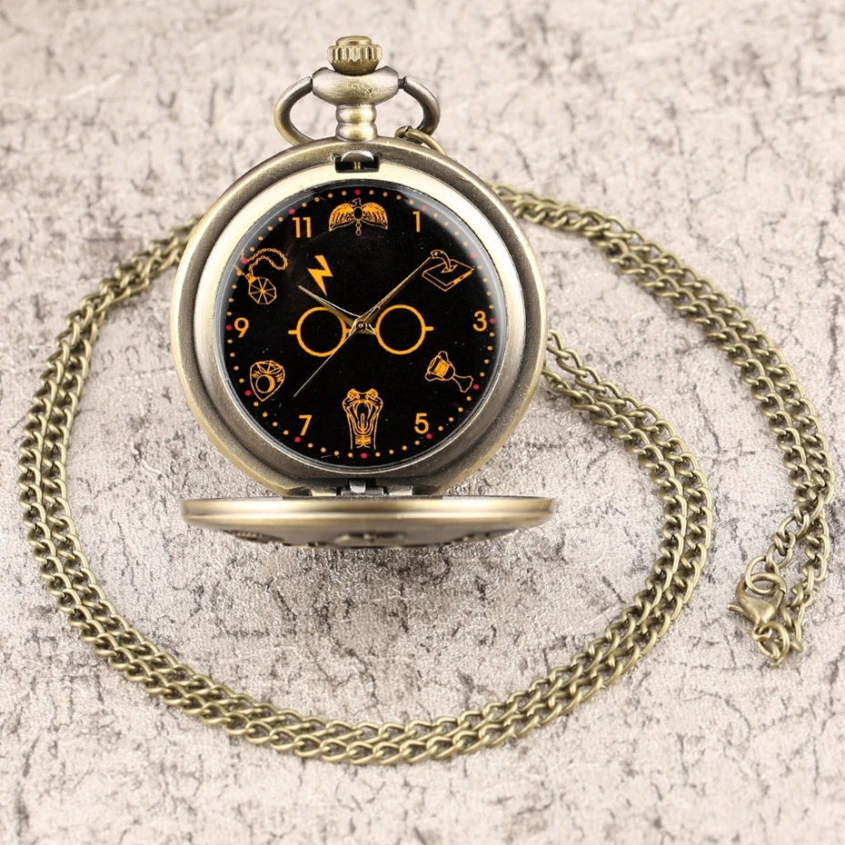 Ретро Античная бронза Harajuku часы Lightning очки кварцевые карманные часы Цепочки и ожерелья флэш-памяти очки Графический подвеска на цепочке художественные подарки в античном стиле