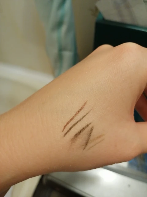 Мягкий гелевый карандаш, держался весь день. Оттенок 2 шоколадный, подходит шатенкам. Радует, что есть точилка. Спасибо продавцу!