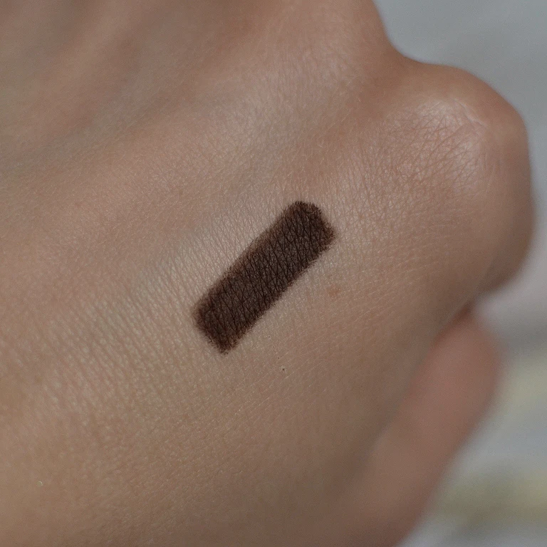 Очень классный стойкий карандаш. Немного поблескивает. Ложиться мягко. Рекомендую