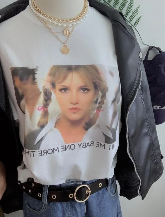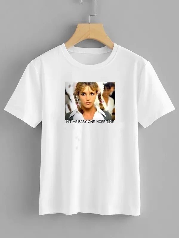 Модные топы sunfiz HJN, футболка с надписью Hit Me Baby One More, женская модная футболка в стиле 90-х годов с изображением тритни Спирса, хипстерские футболки в уличном стиле