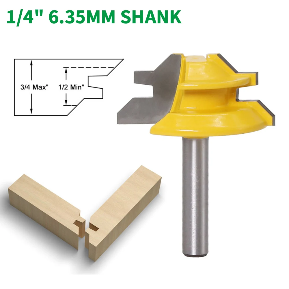 1 шт. 1/4 "6,35 мм хвостовик Фрезерный резак резьба по дереву 45 градусов Блокировка торцевой фрезы деревообрабатывающий Карбид тенон фрезерный инструмент