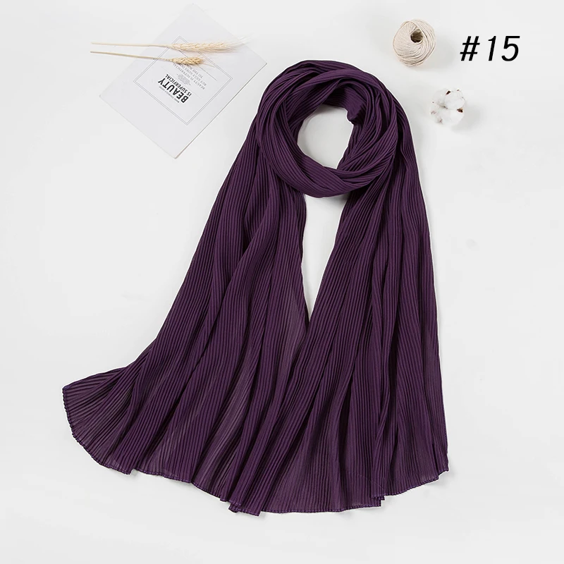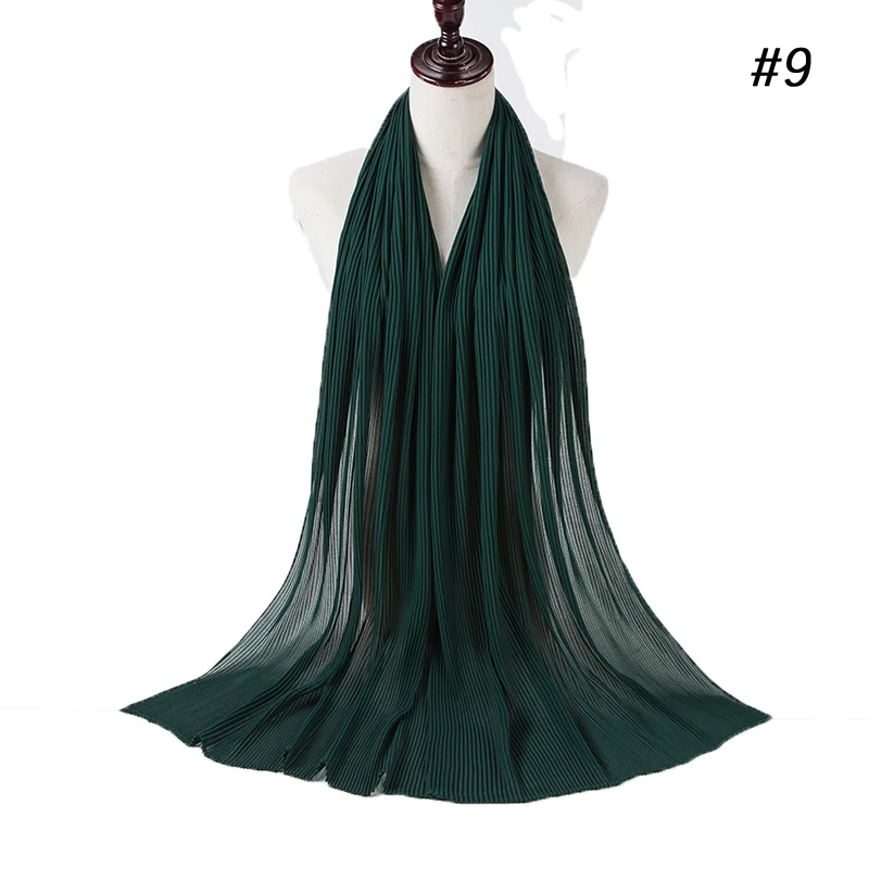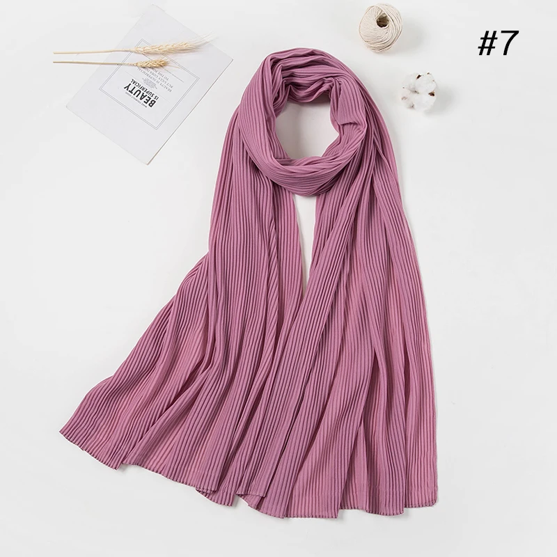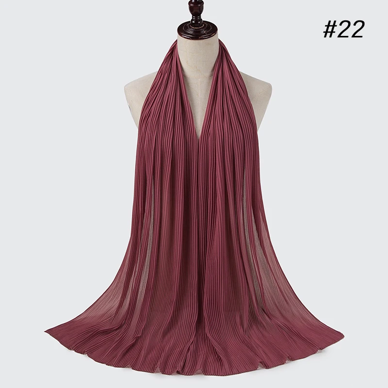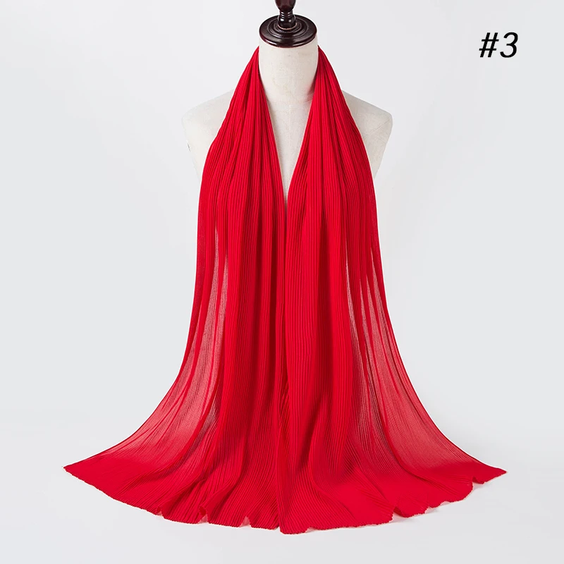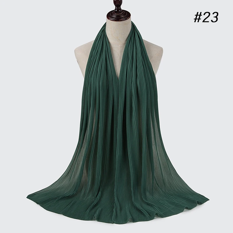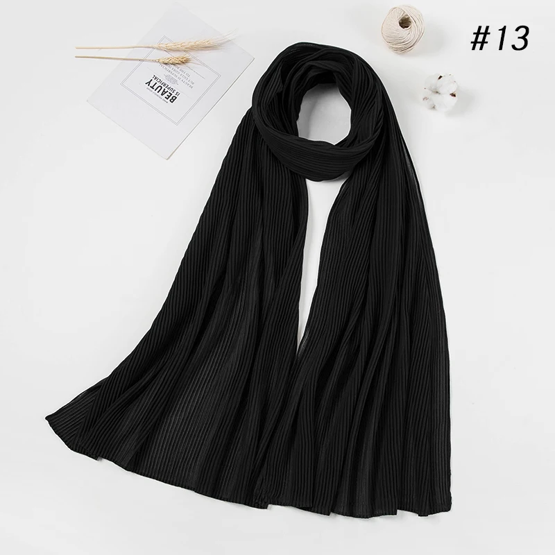 Шарф Шифоновый Женский, однотонный плиссированный шарф с помпонами и помпонами, повязка для головы хиджаб шарф, большой размер 85*180 см