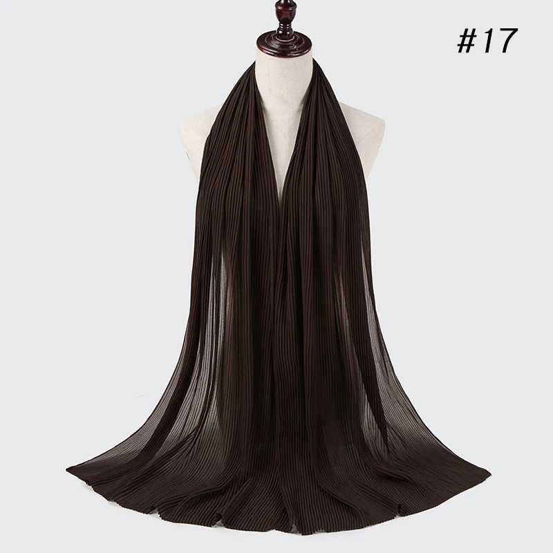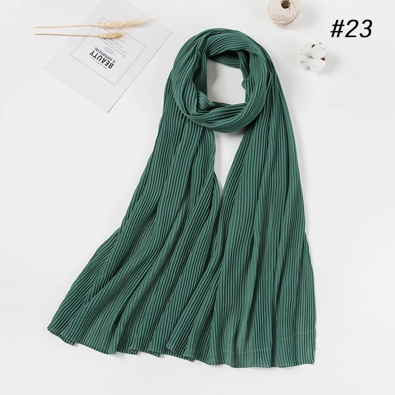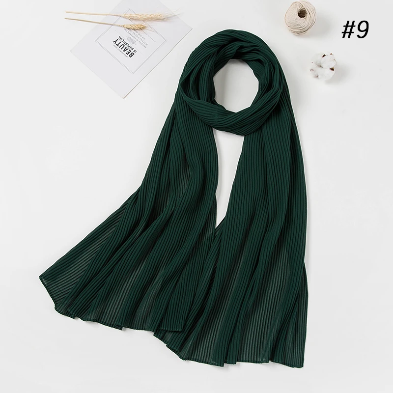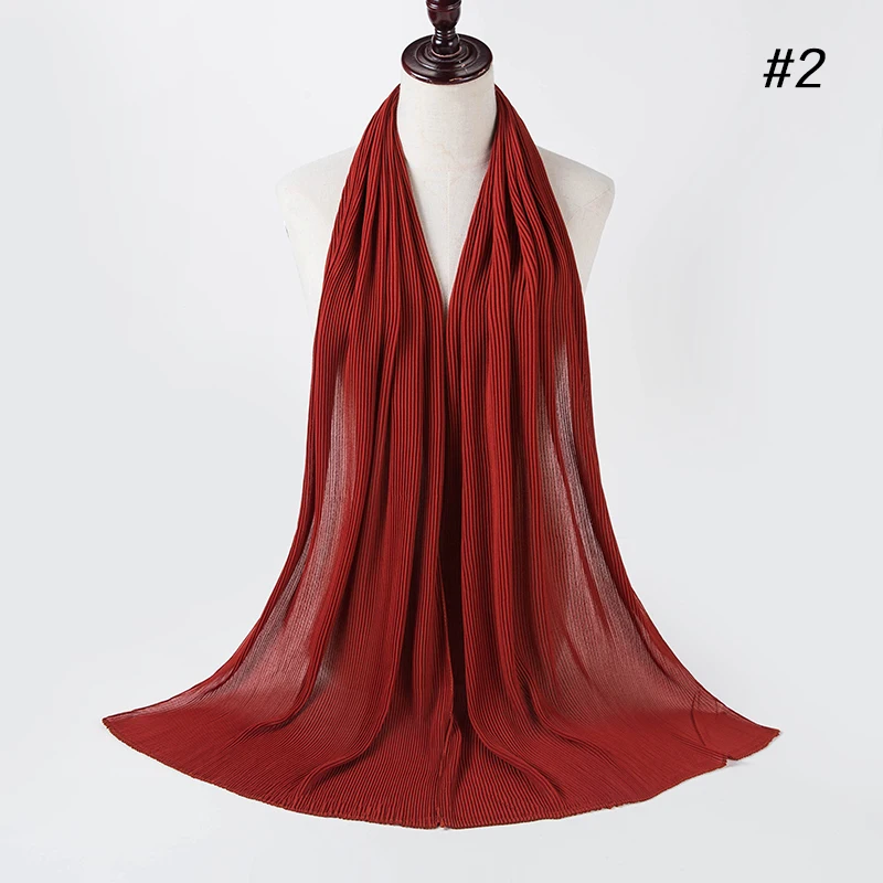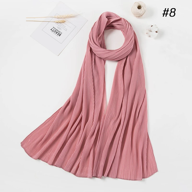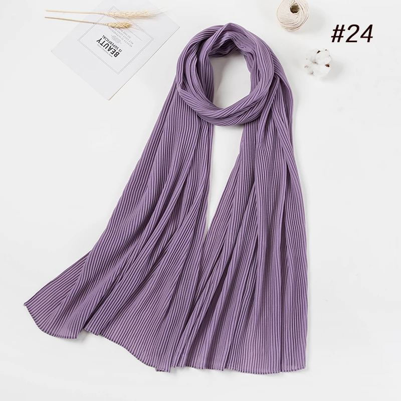 Шарф Шифоновый Женский, однотонный плиссированный шарф с помпонами и помпонами, повязка для головы хиджаб шарф, большой размер 85*180 см