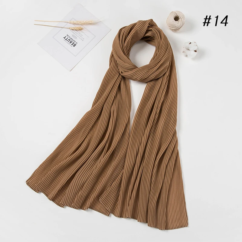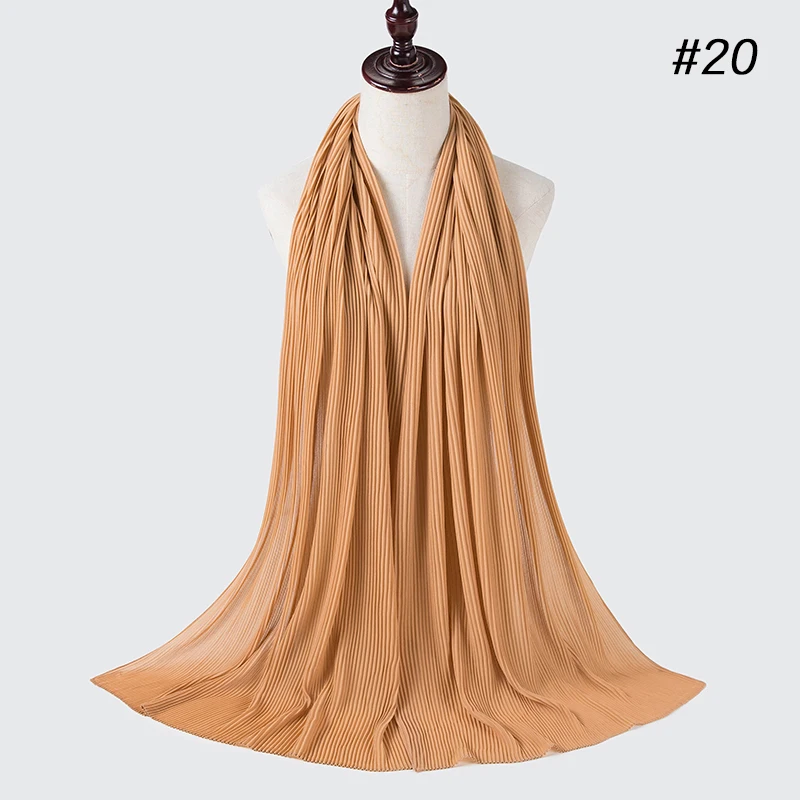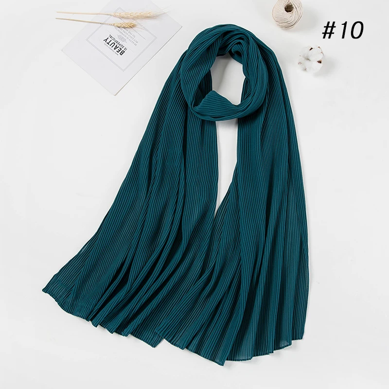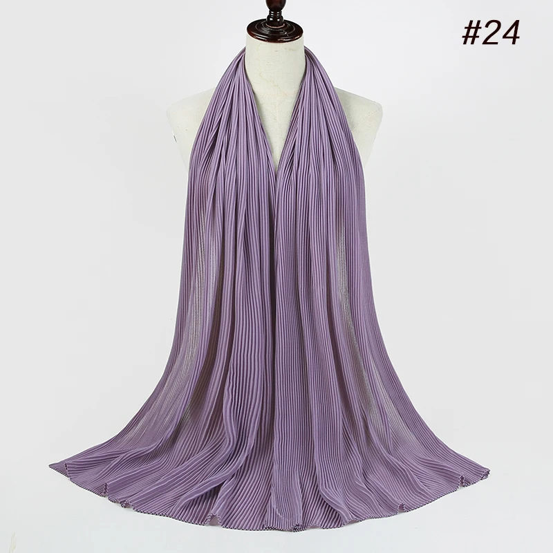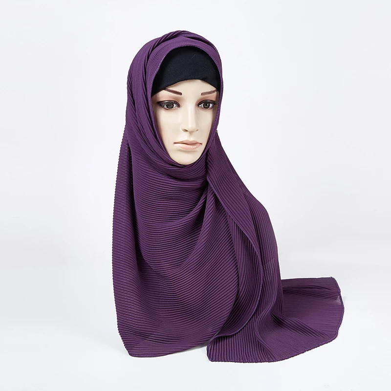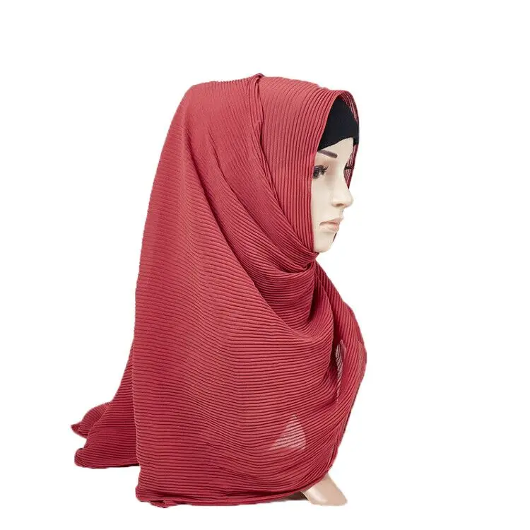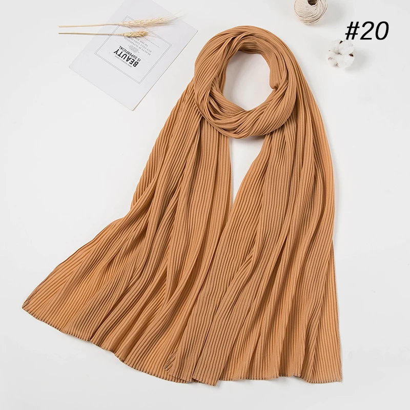 Шарф Шифоновый Женский, однотонный плиссированный шарф с помпонами и помпонами, повязка для головы хиджаб шарф, большой размер 85*180 см