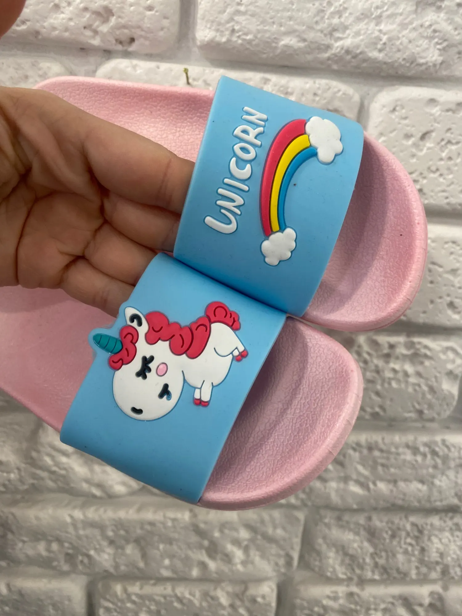 Шлепанцы для мальчиков и девочек, с единорогом, Нескользящие