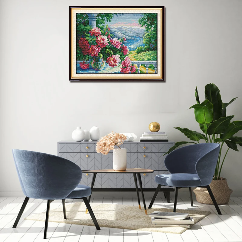 Набор для вышивки крестиком 14CT с принтом садовый пейзаж, серия уз...
