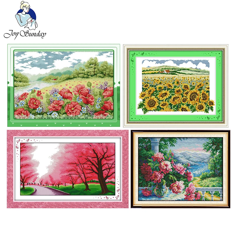 Четырехсезонные наборы для вышивки крестиком с цветами 11CT 14CT, р...