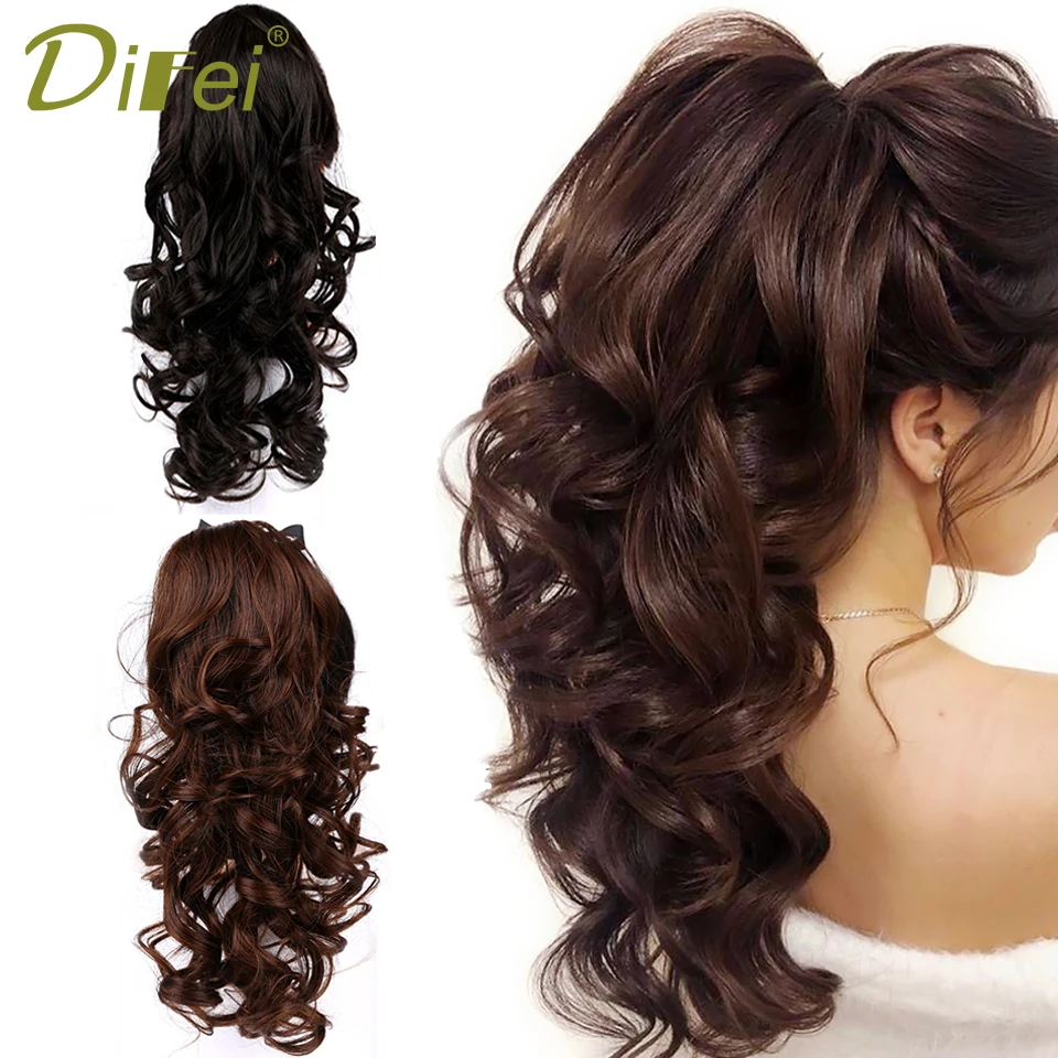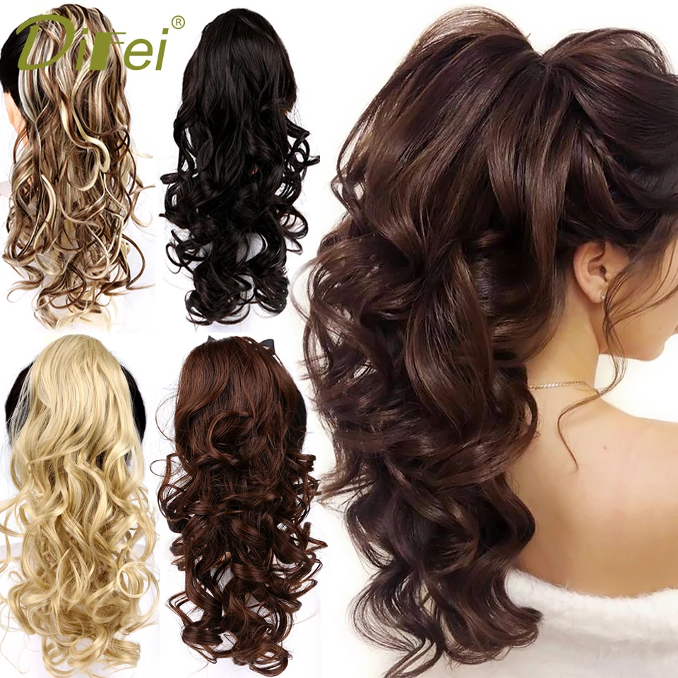 DIFEI женские Синтетические длинные волнистые заколки для конского хвоста, цельное высокотемпературное волокно, натуральное обертывание вокруг волос