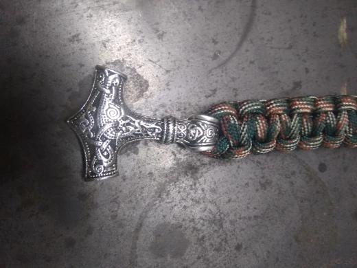 заказ пришел быстро, описанию соответствует, сам молот массивный, выглядит красиво. Одно НО - длина от молота до петли сантиметров двадцать, мне на запястье оделся с трудом, кровообращения почти остановилось. Ежели на крупную руку покупать - лучше померить окружность предварительно. В целом красивая вещь.