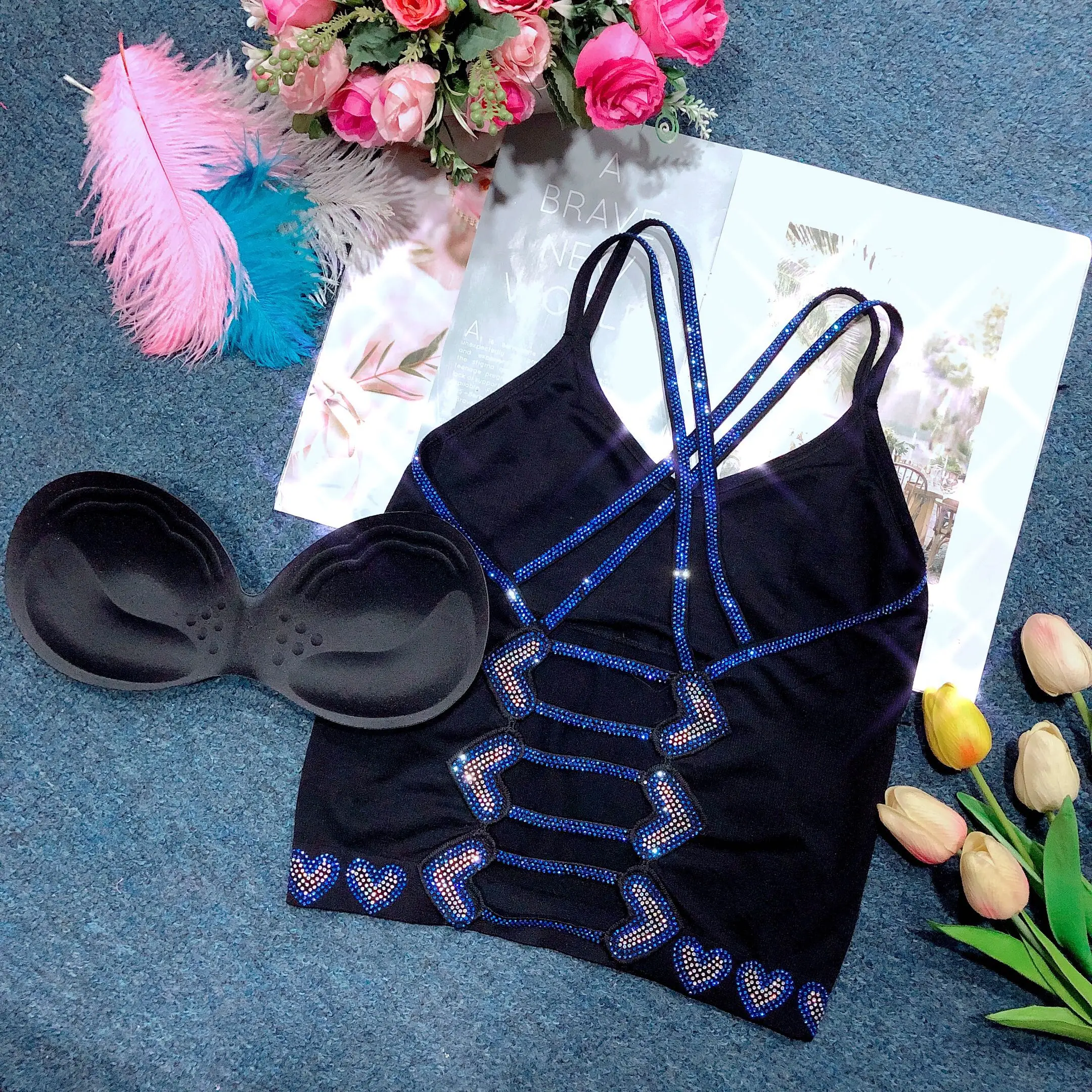Майка женская, с драгоценными камнями, для клуба, танцев, стразы