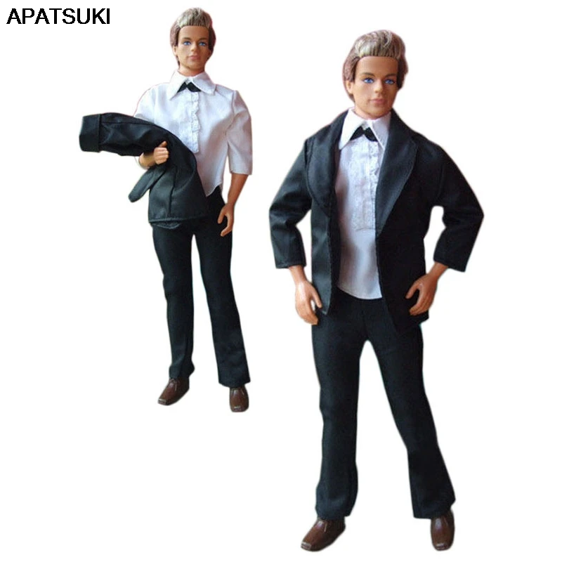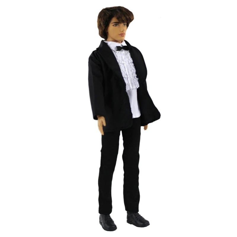 Высококачественный официальный костюм для Кена, для мальчика, для кукол, белая рубашка, черные длинные брюки, пальто, одежда для парень Барби Кен
