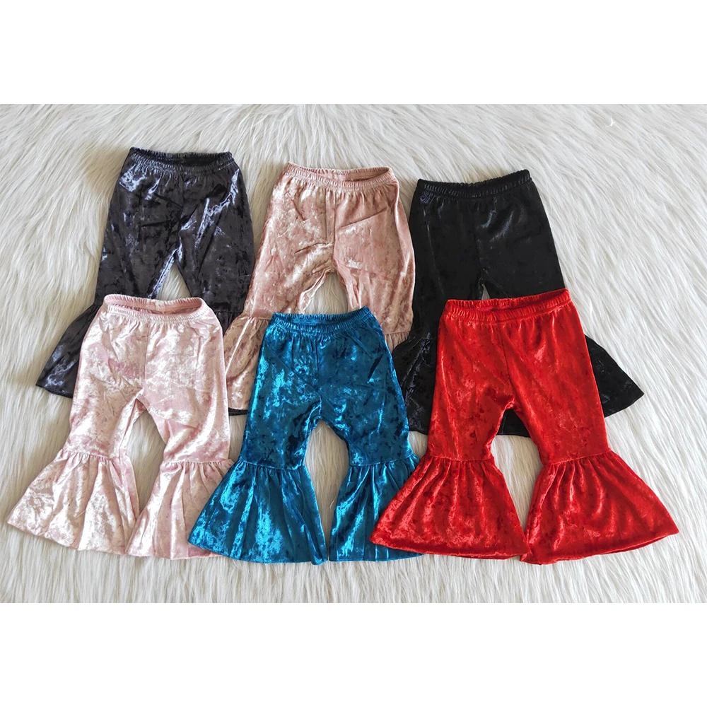 Модные бархатные штаны с колокольчиками для маленьких девочек, 5 цветов, расклешенные детские брюки