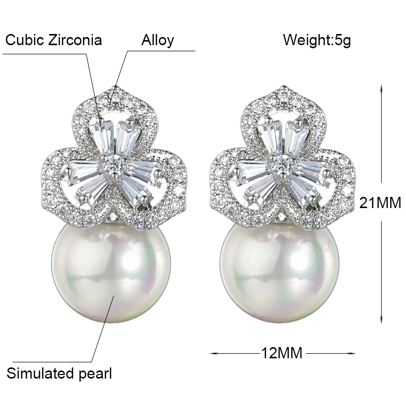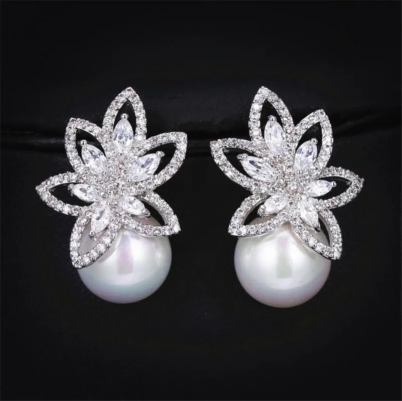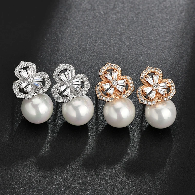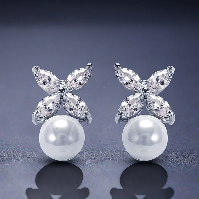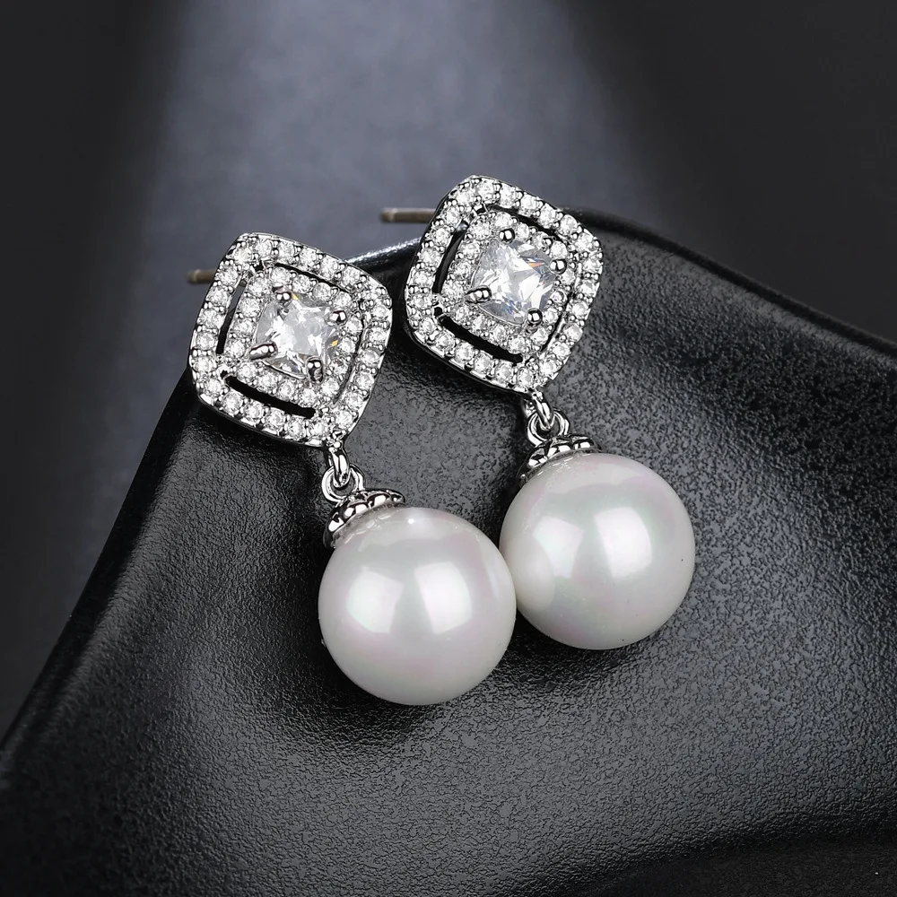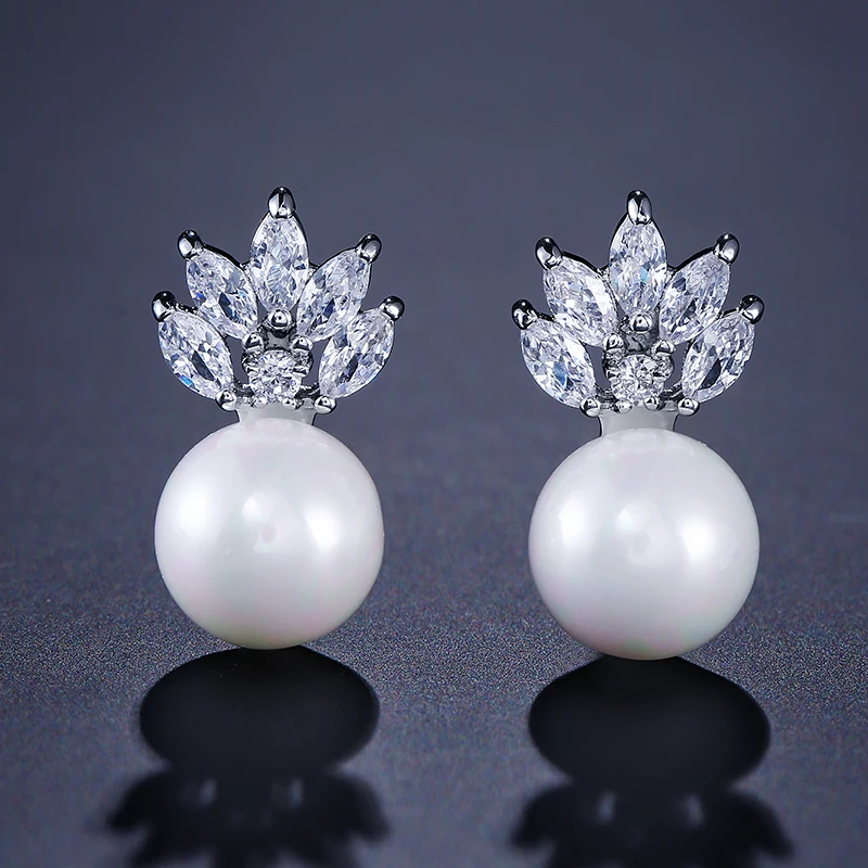 Модные свадебные ювелирные изделия с имитацией жемчуга, элегантные серьги-гвоздики с кристаллами циркония для женщин, аксессуары для платьев CE1858