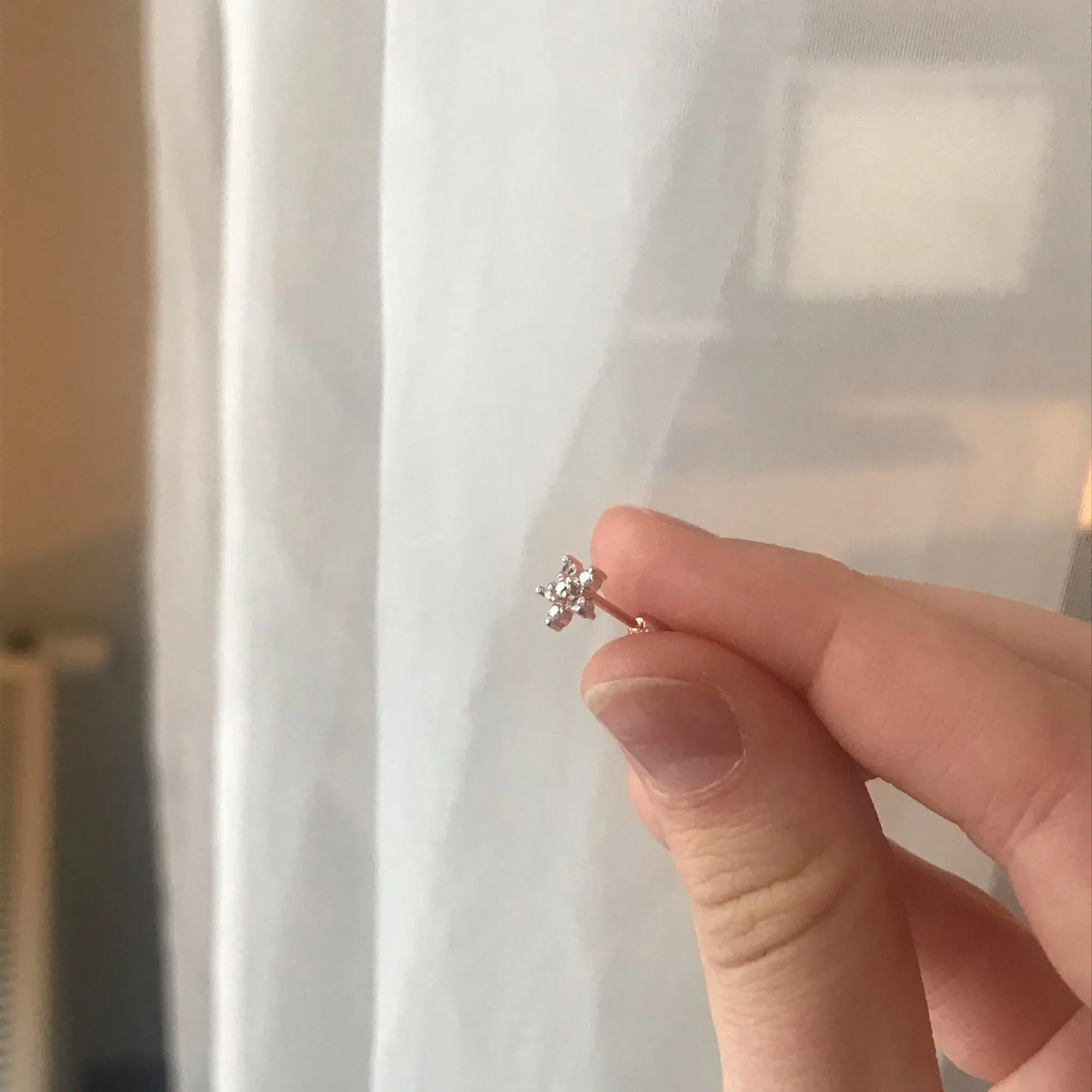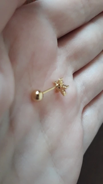 Доставка быстрая. Не знаю каким местом я смотрела, но продаются сережки поштучно (думала парой). Заказываю второю))) Сережка очень красивая. У меня гвоздики за ухом царапают и хотела с шариком на постоянку надет. Выглядит, как настоящее золото. Рекомендую!