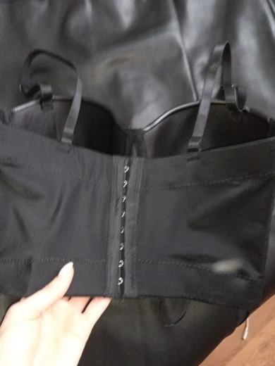 Отлично сшито, без запаха, ниток и дефектов. Единственное, ориентировалась на свои маленькие сиси, чтобы чашка была не как у пессимиста наполовину пустая, и корсет маловат в итоге в ширине, застегнулся на последние крючки