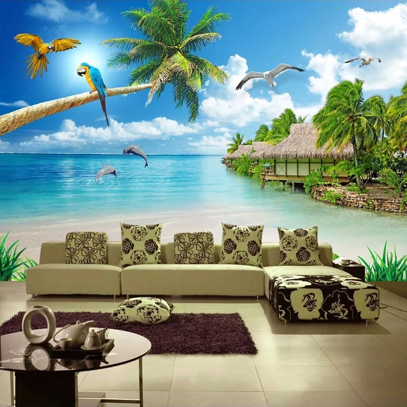 Пользовательские 3D фото обои синее небо белые облака песчаный пляж морской пейзаж Большая фреска для гостиной спальни Настенный декор живопись