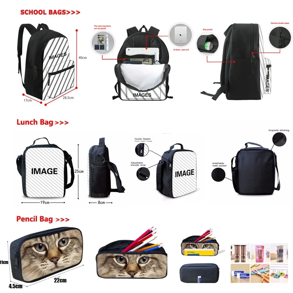 Комплект из 3 предметов для девочек и мальчиков, школьный рюкзак и ...