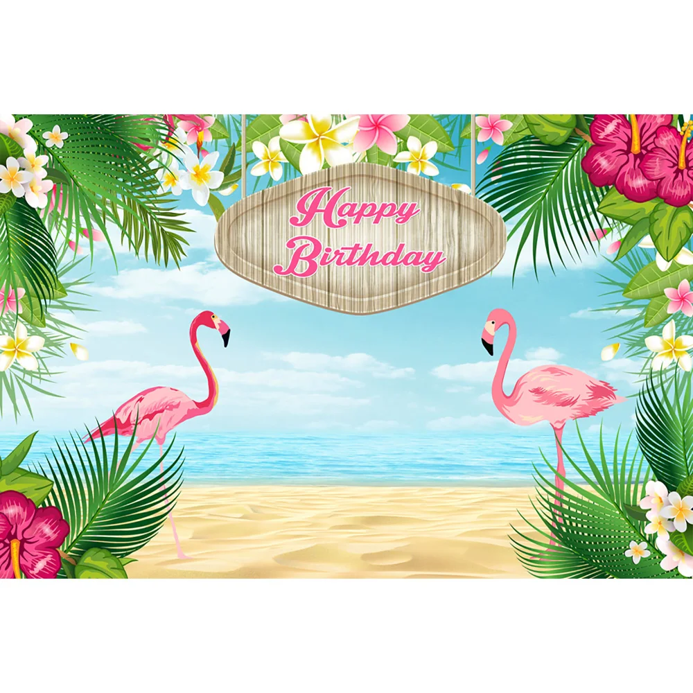 С Днем Рождения Фламинго Гавайский День рождения баннер фон тропический пляж или Алоха Вечеринка десерт стол декорации