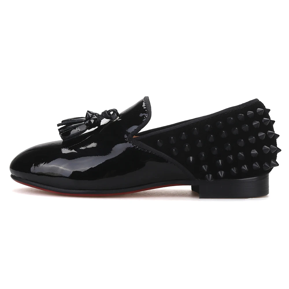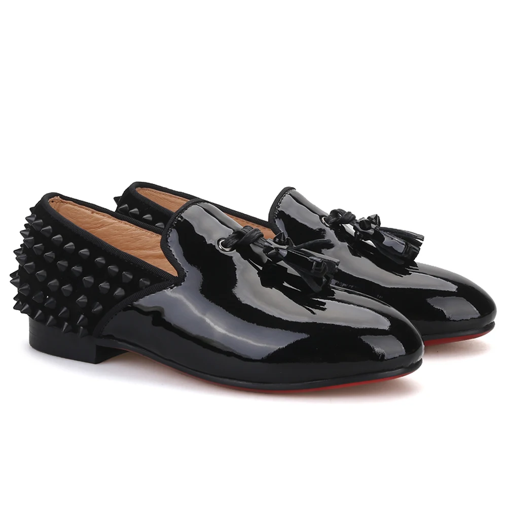 PiergitarДетские Лоферы ручной работы с кисточками и шипами, бордов...