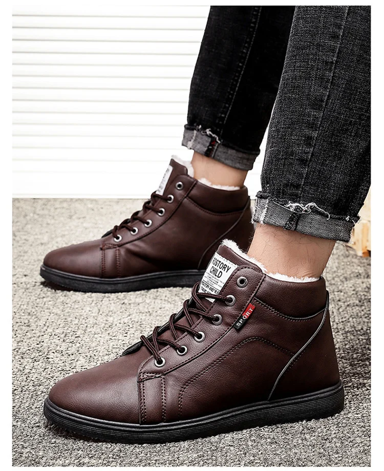 Мужские зимние ботинки для отдыха, высокие ботинки из хлопка, кожан...