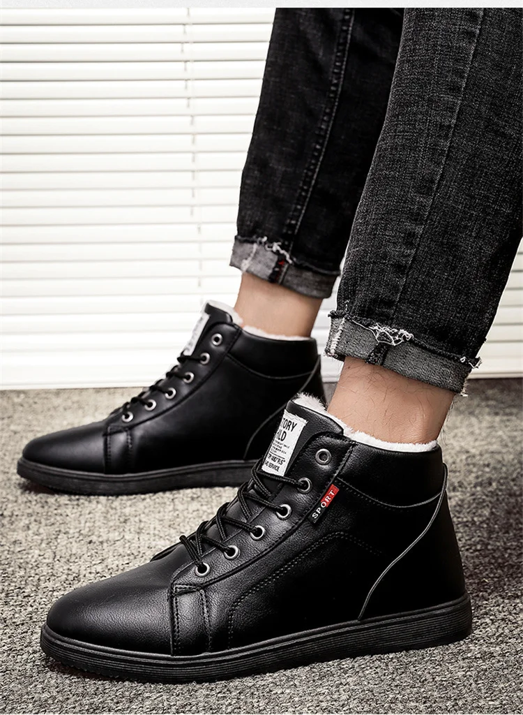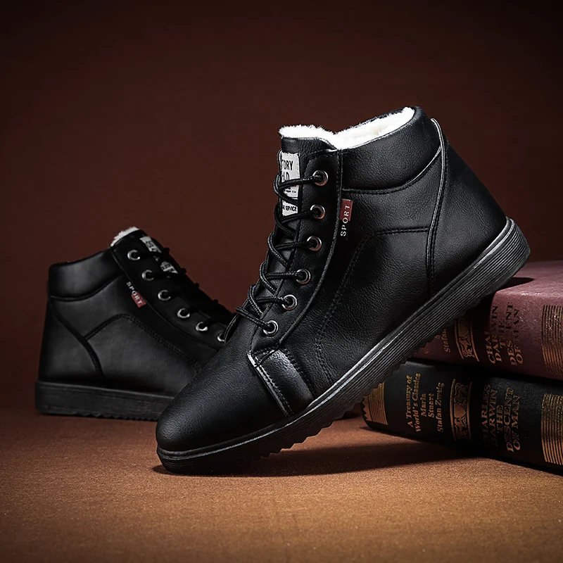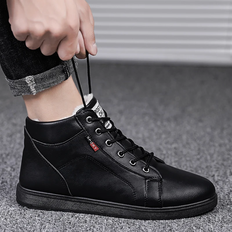 Мужские кожаные ботинки, Мужская зимняя обувь, Нескользящие зимние ботинки, мужские ботинки, зимняя обувь, мужская теплая обувь на платформе