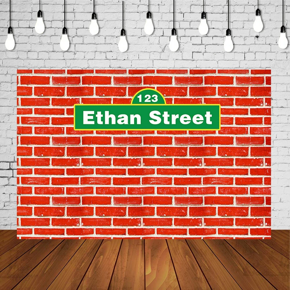 Красная кирпичная стена с героями Улица Сезам фон новорожденный день рождения фон для фотосъемки десерт украшения стола фон W-3568