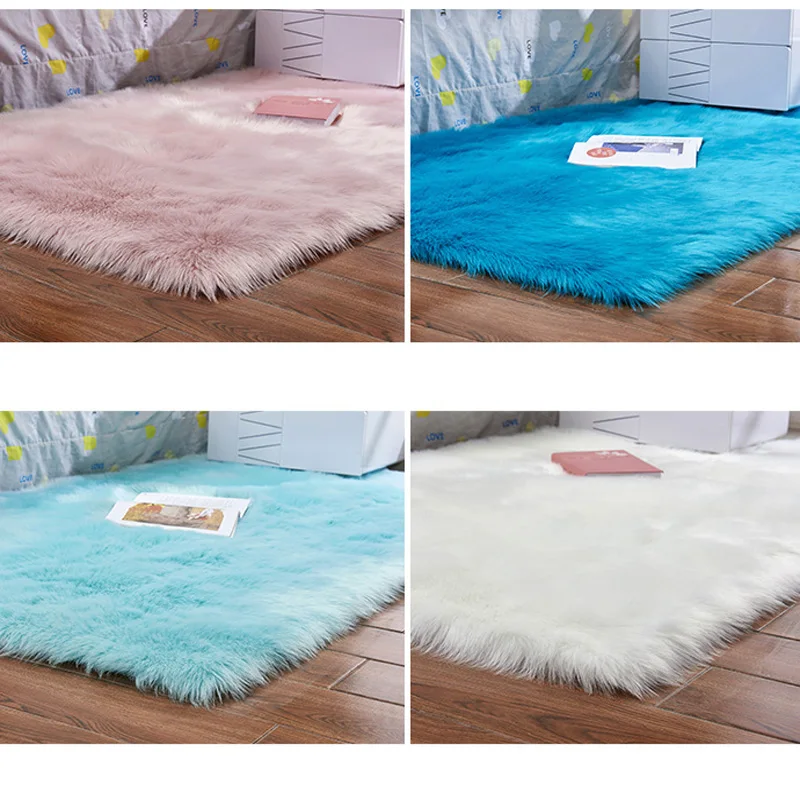 Искусственный шерстяной коврик для гостинойспальни, нескользящий мя...