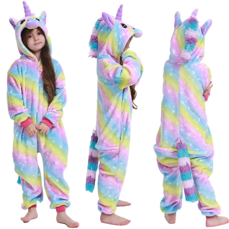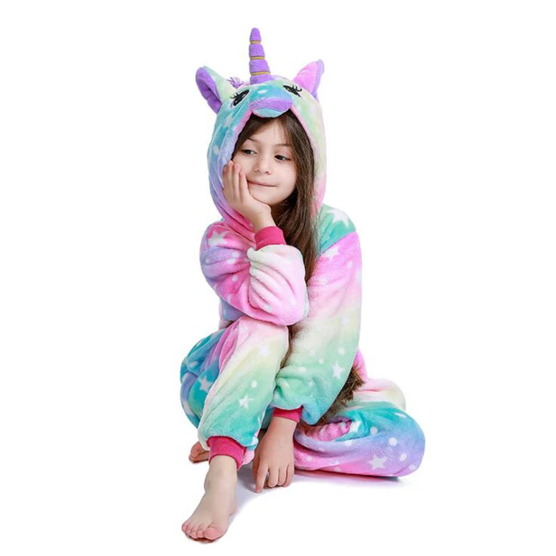 Детский костюм для костюмированной вечеринки с единорогом; Пижамы для девочек с животными; Зимний детский халат; Пижамы для мальчиков и девочек; Теплая одежда для сна; Детская ночная рубашка; Комбинезоны