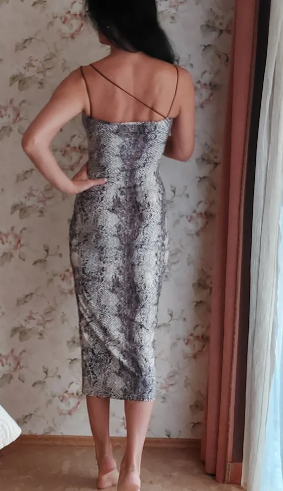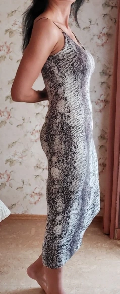 Заказал это платье в небольшом размере, оно идеально сидит. Оно имеет эластичный материал, и оно не просвечивает. Ремешки очень эластичные, поэтому старайтесь не надевать их слишком сильно, потому что они не подходят, по моему мнению. Однако, супер отличная покупка, я могу вернуться и заказать гепарда в следующий раз. Спасибо!