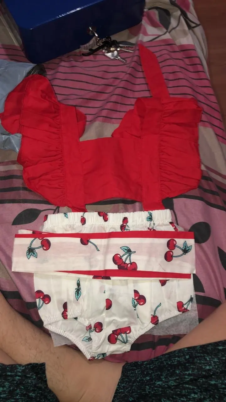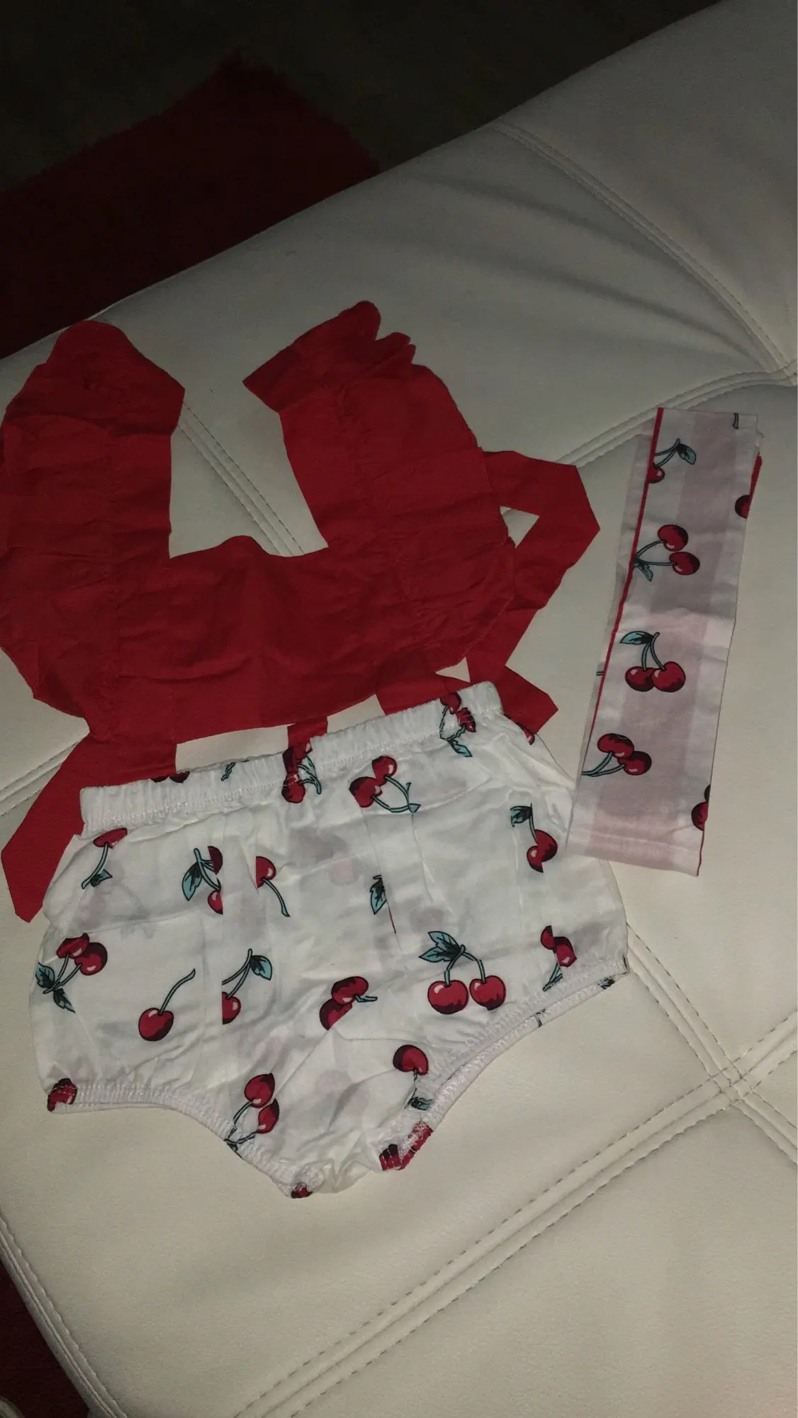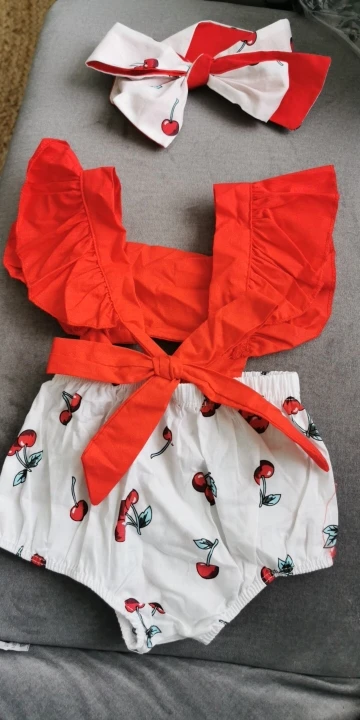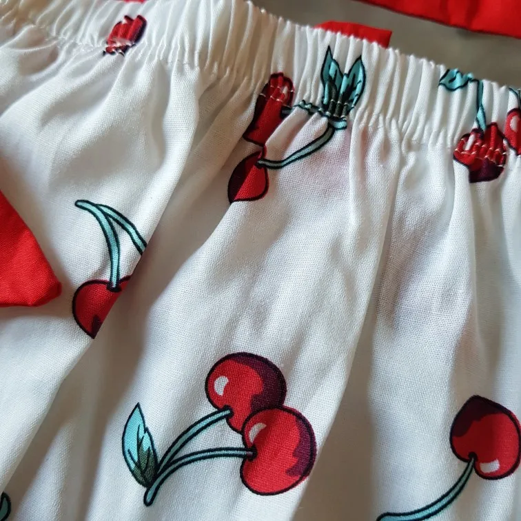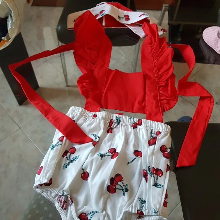 Боди для девочек, 2 шт., с оборками и вишневым принтом, летняя одежда, повязка на голову, пляжный костюм