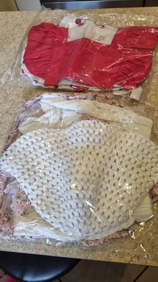 Es tal como aparece en la foto la lazada viene sin hacer , la tela se arruga mucho y viene más pequeña de lo normal, pedí la 12 y le valdrá a mi pequeña de 6-9.