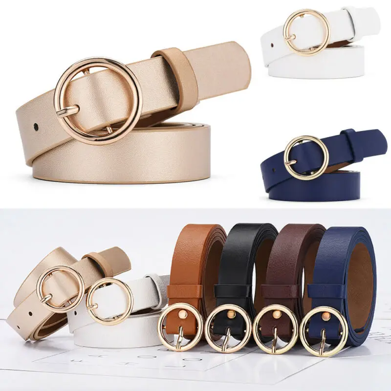 Новинка в моде, Женский ремень с круглой пряжкой, Джинсовый пояс из искусственной кожи, в наличии в Великобритании