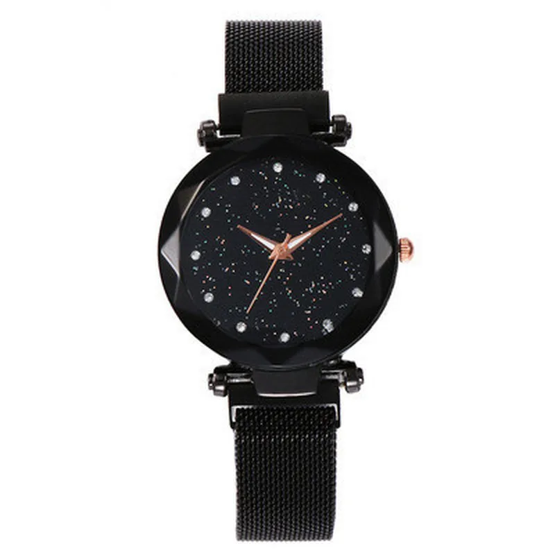 Модные женские кварцевые часы, 1 шт., браслет из нержавеющей стали, сетчатый Браслет, магнитная пряжка, звездное небо, аналоговые наручные часы, часовой механизм