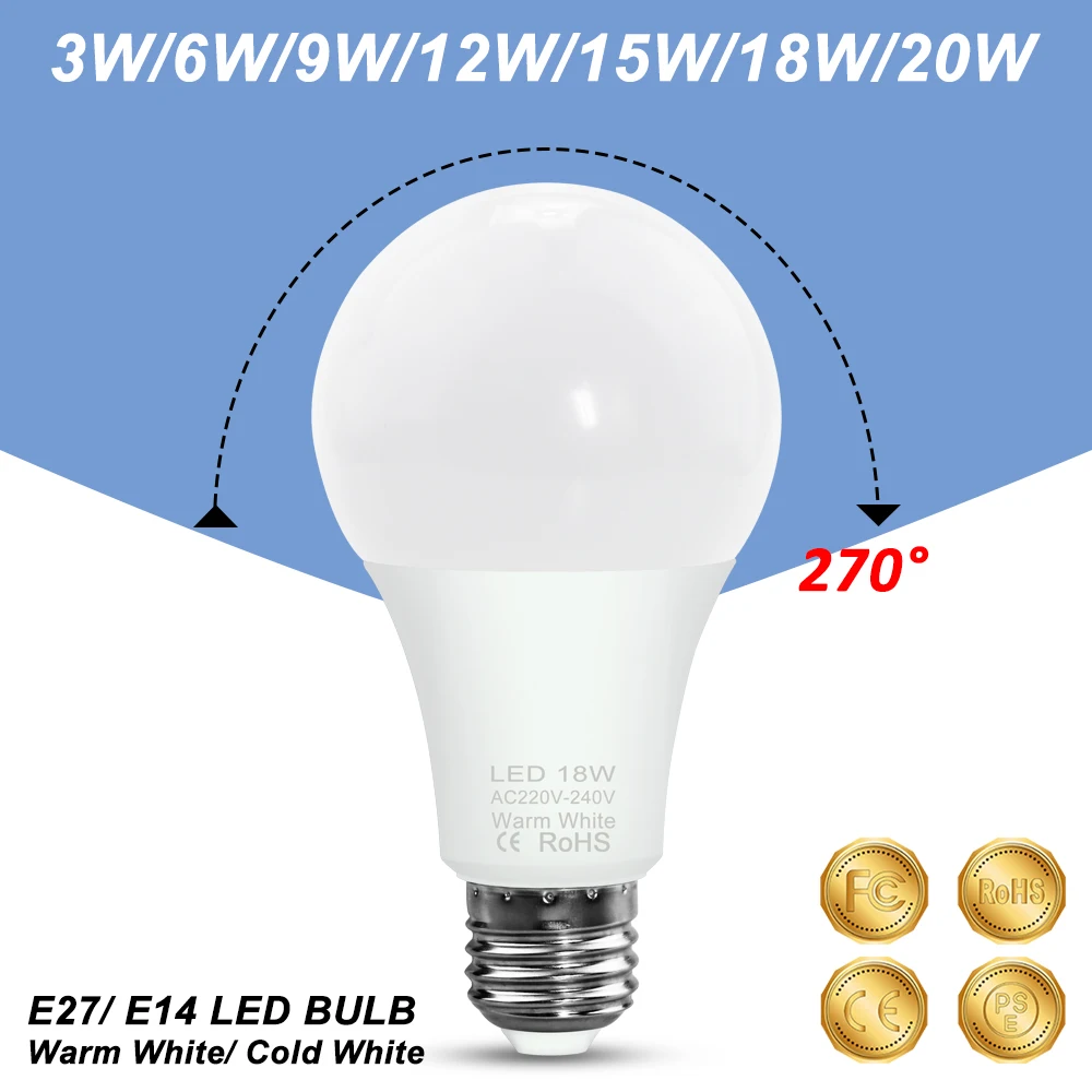 Светодиодная лампа E27 SMD2835, светодиодная лампа для домашнего светильник, лампада AC220V-240V, 3 Вт, 6 Вт, 9 Вт, 12 Вт, 15 Вт, 18 Вт, 20 Вт, светодиодный сберегающий светодиодный прожсветильник, настольная лампа
