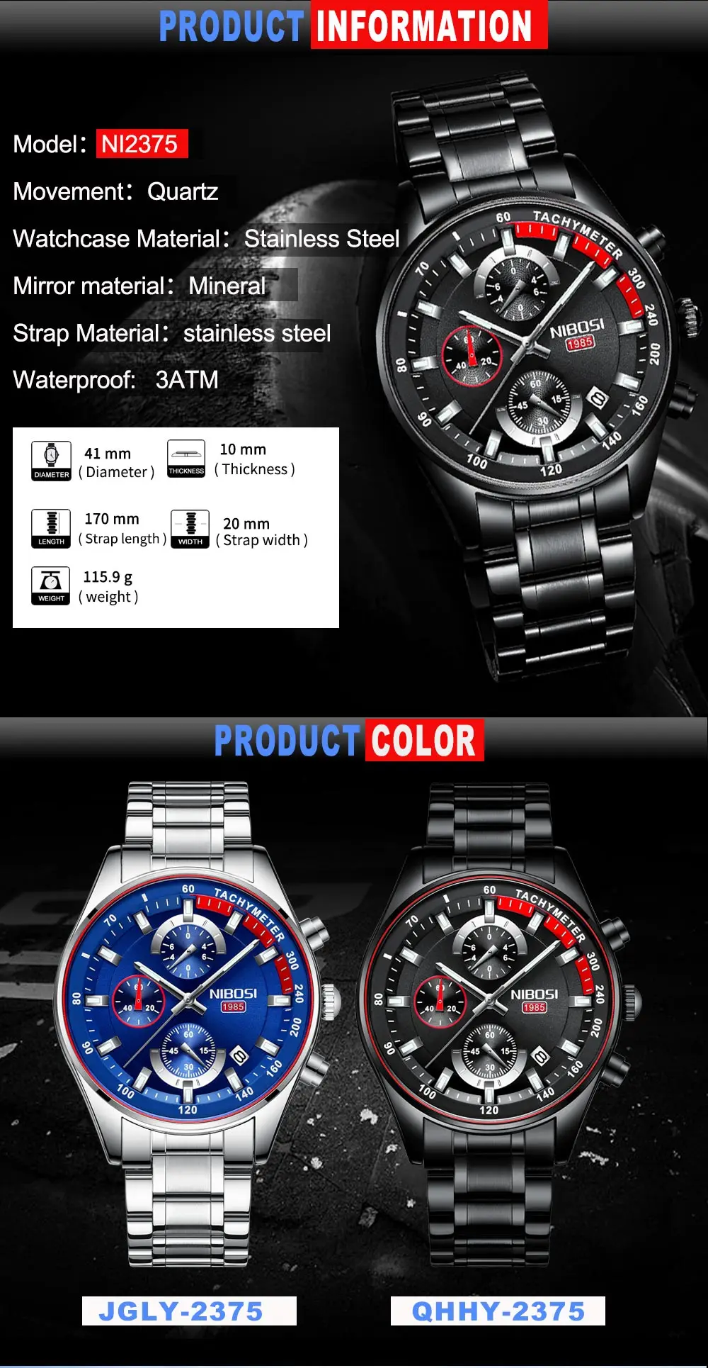 Package Including1 x Nibosi Watch 1 x Elegant Box 1x User Manual
