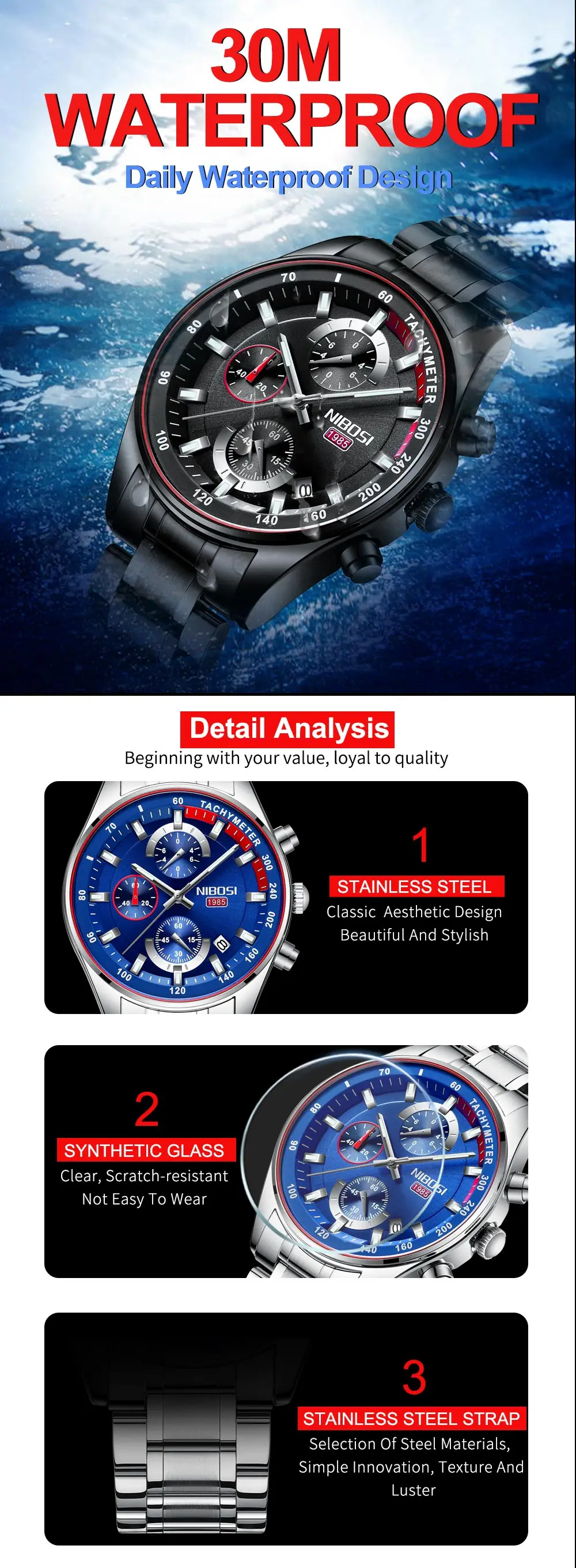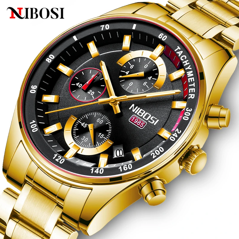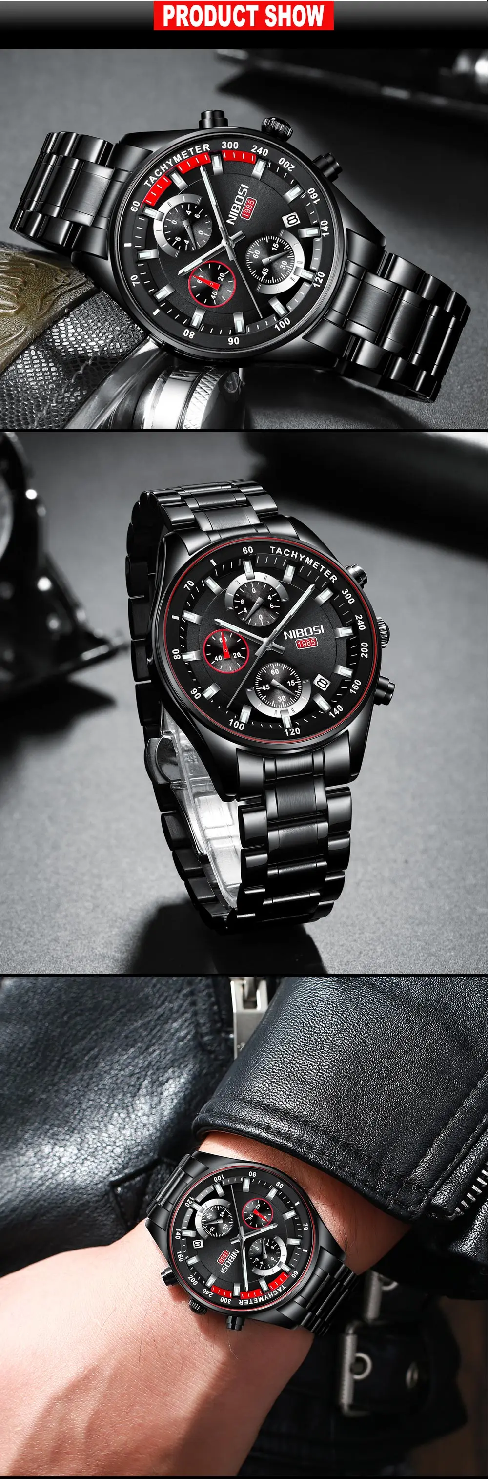 Часы наручные NIBOSI Мужские кварцевые, брендовые Роскошные водонепроницаемые Модные Повседневные, с коробкой