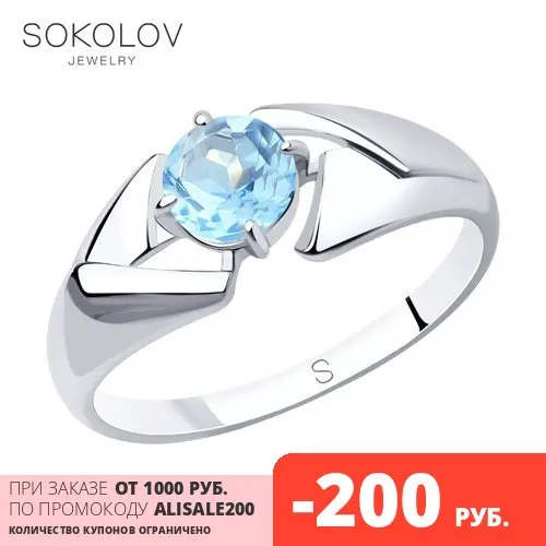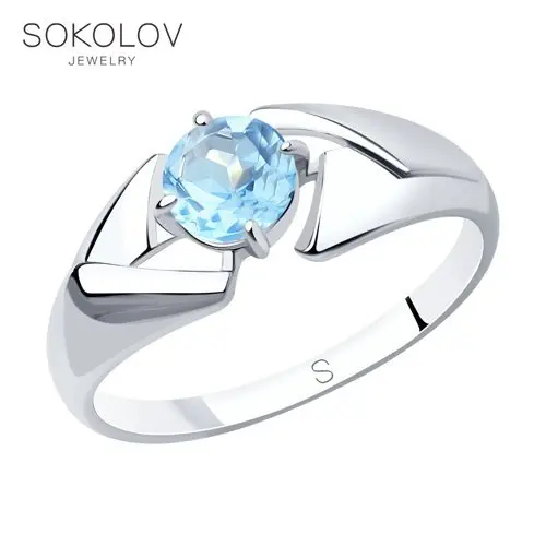 Кольцо SOKOLOV из серебра с синим топазом, Серебро, 925, Женское, О...