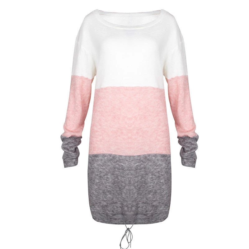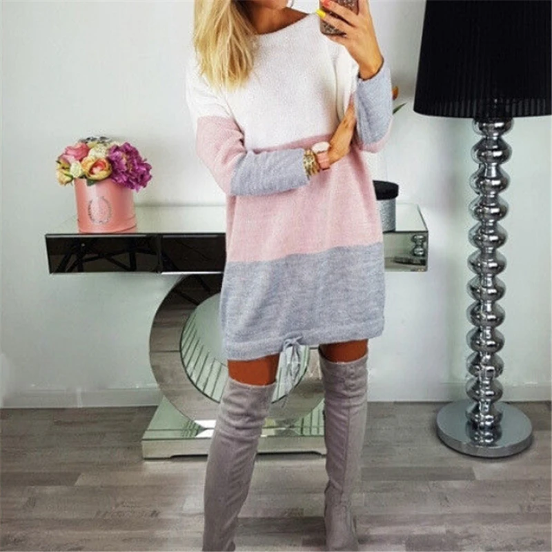 2020 женское платье-свитер зимнее теплое свободное платье с длинным рукавом женское лоскутное трикотажное платье с круглым вырезом на шнуровке пуловер вечерние платья