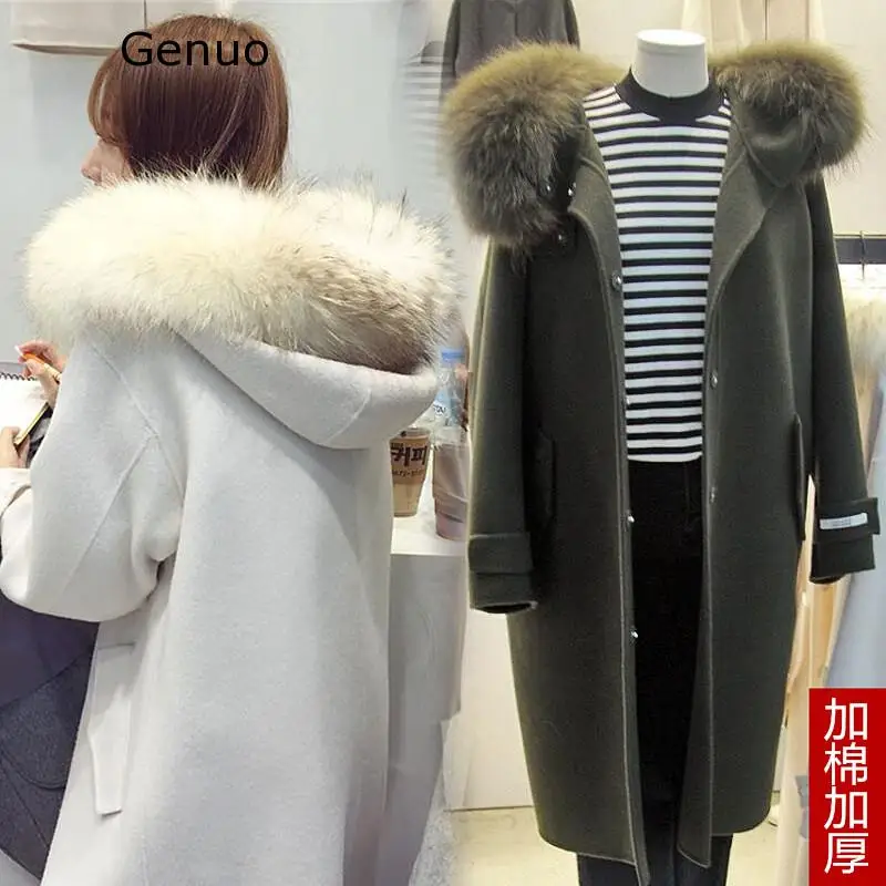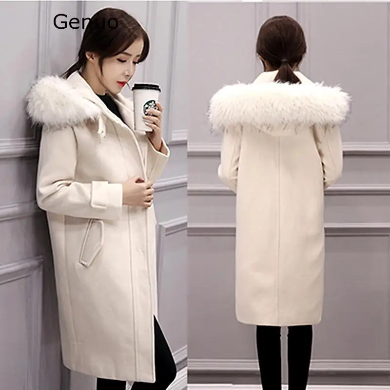 Пальто с воротником из искусственного меха женская шерстяная куртка с капюшоном X-Long плотная теплая женская верхняя одежда однотонное пальто 2020 высокое качество