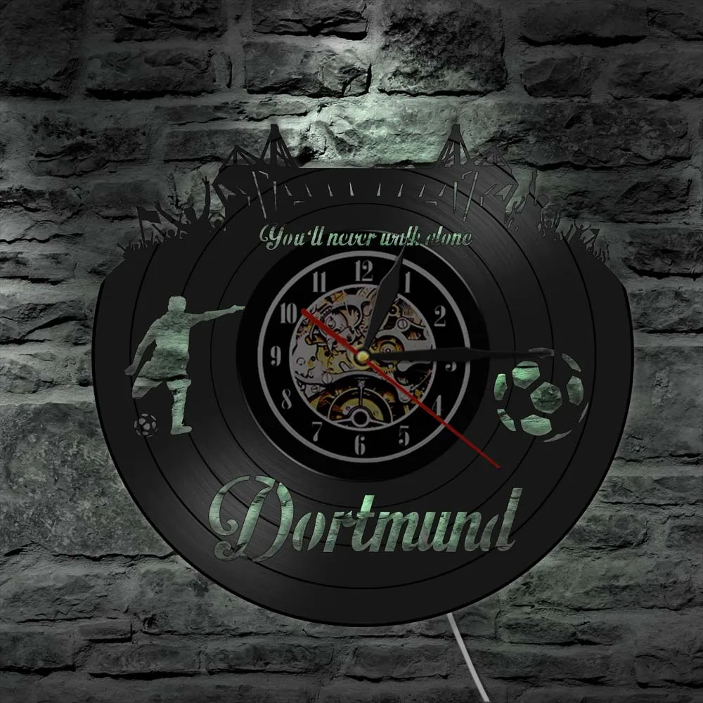 Настенные часы немецкого Дортмунд с виниловой пластиной и изображением пейзажа города Дортмунд, праздничные часы для фанатов футбольного стадиона, домашний декор, награды чемпионов, подарок