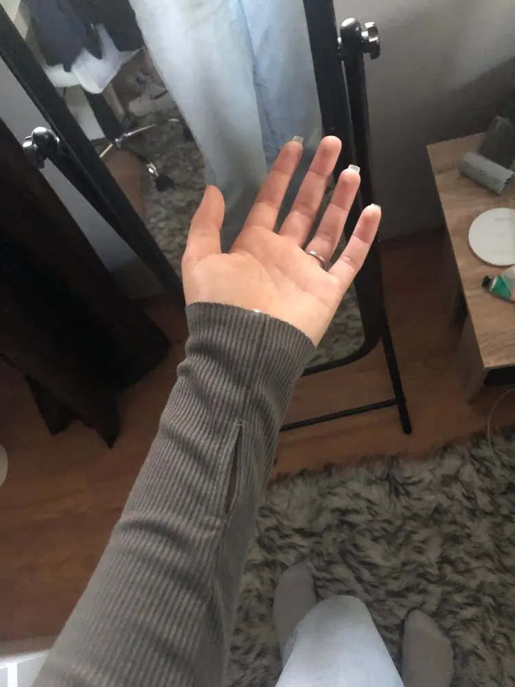 Рукава немного слишком узкие и прорези для большого пальца очень высокие, но рукава не достаточно длинные. Милый топ tho 8/10