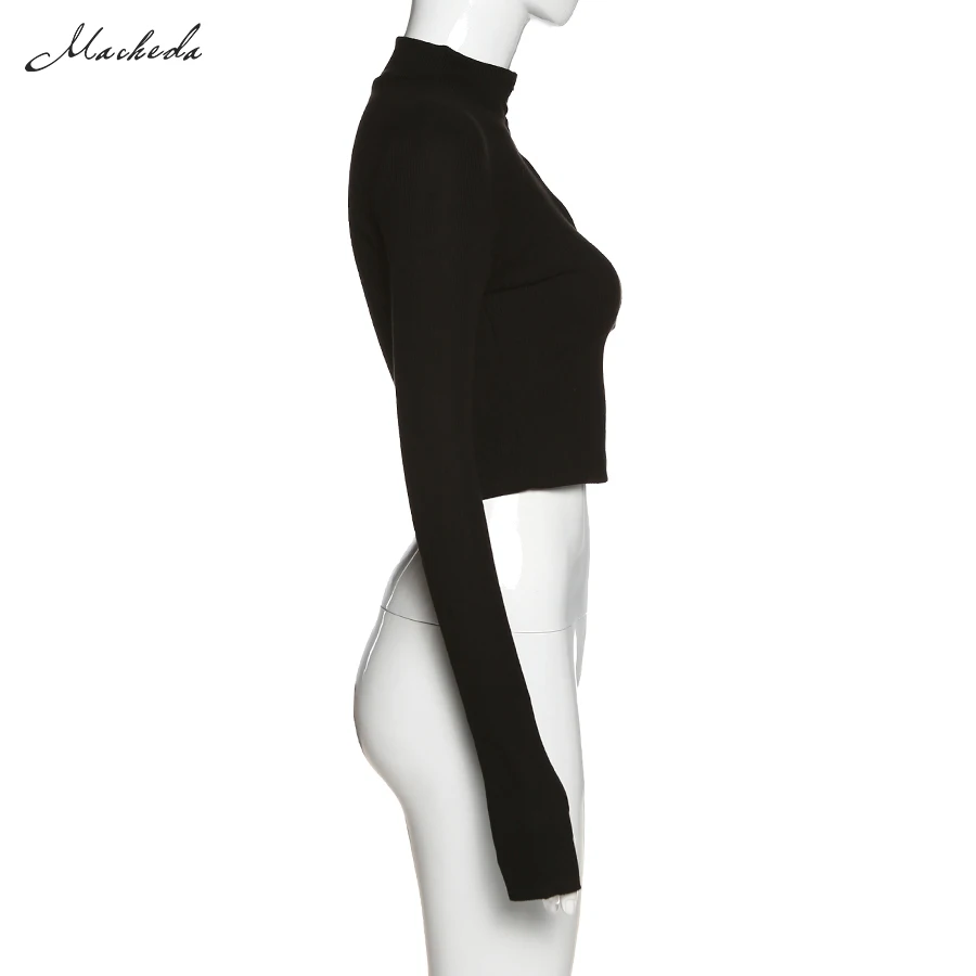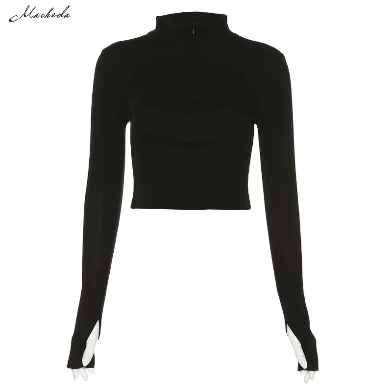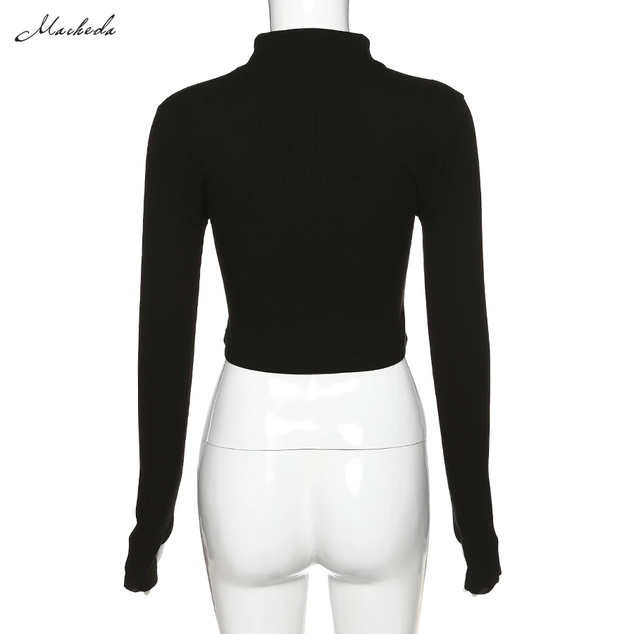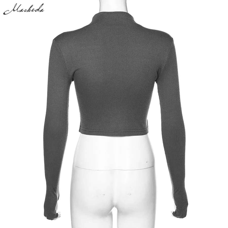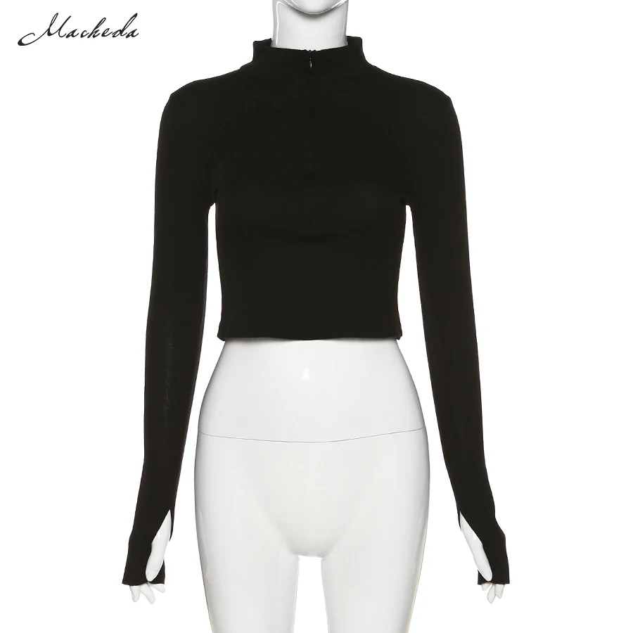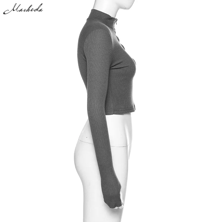 Женская трикотажная рубашка Macheda, в рубчик, на молнии, повседневная, уличная одежда, элегантная, однотонная, короткая, весна 2021