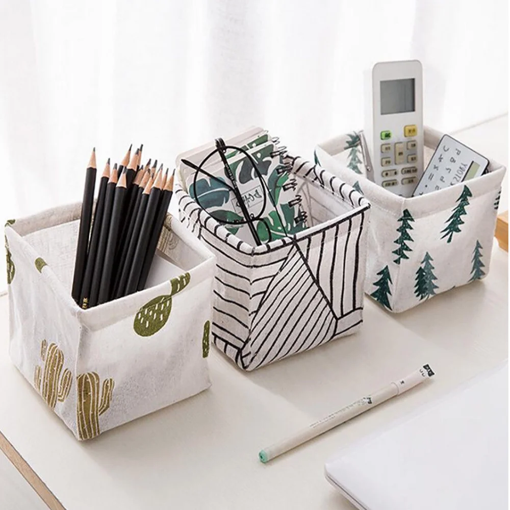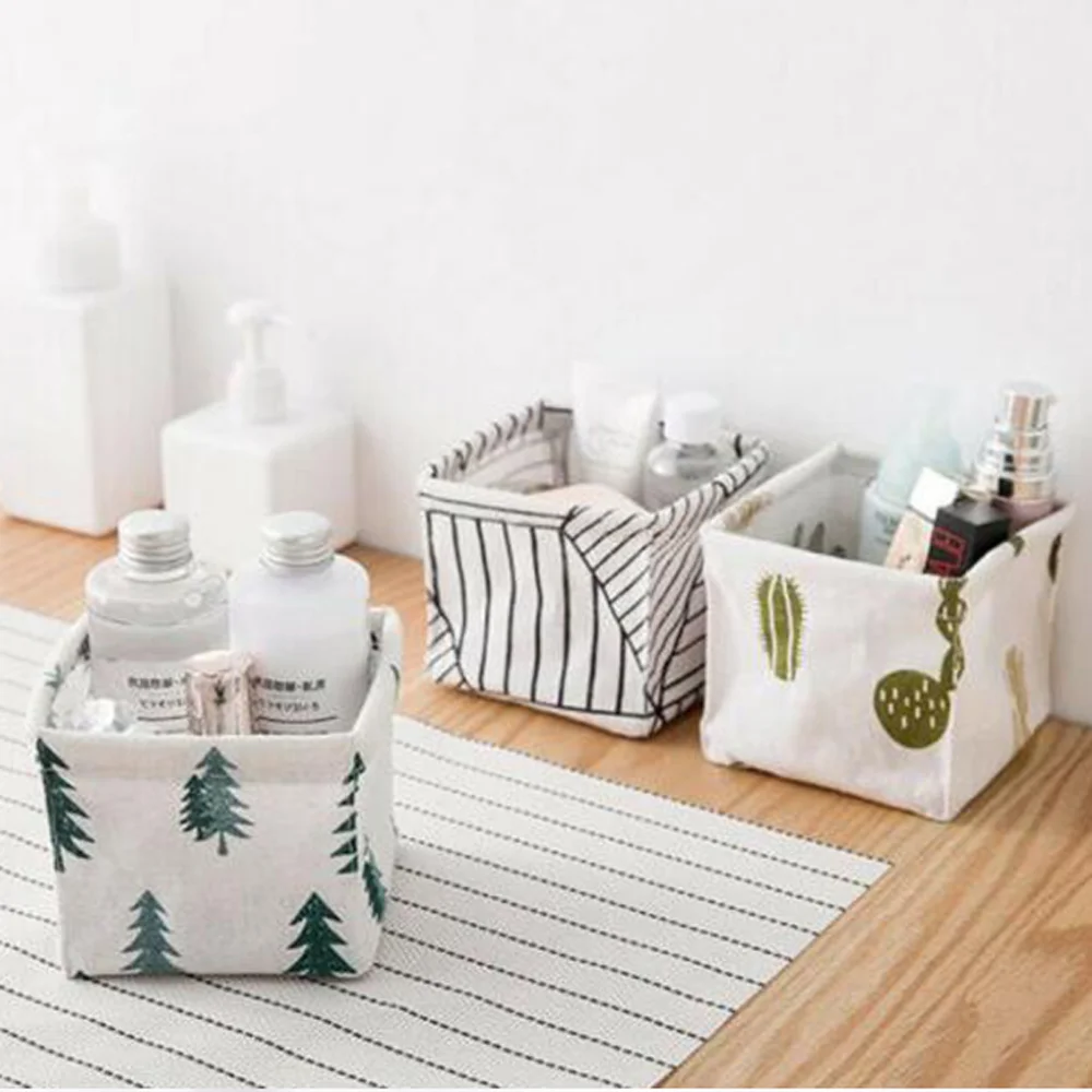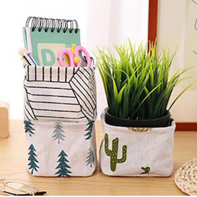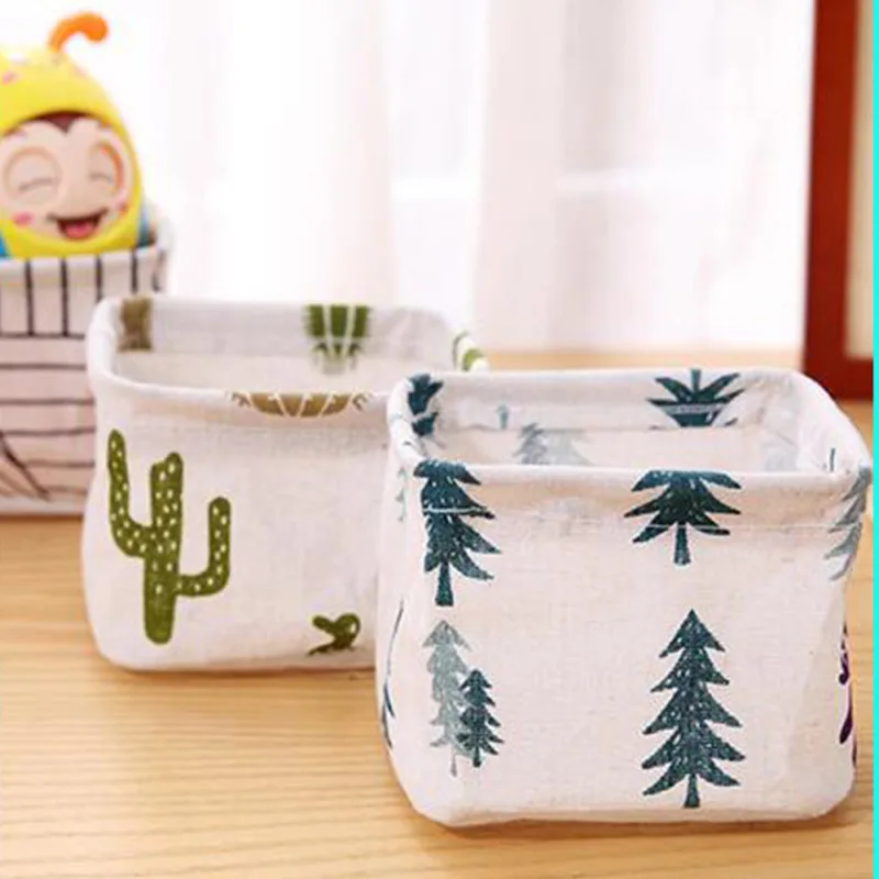 Настольный органайзер для хранения, водонепроницаемая сумка из хлопка и льна с милым принтом для хранения корзина для хранения мелочей и нижнего белья