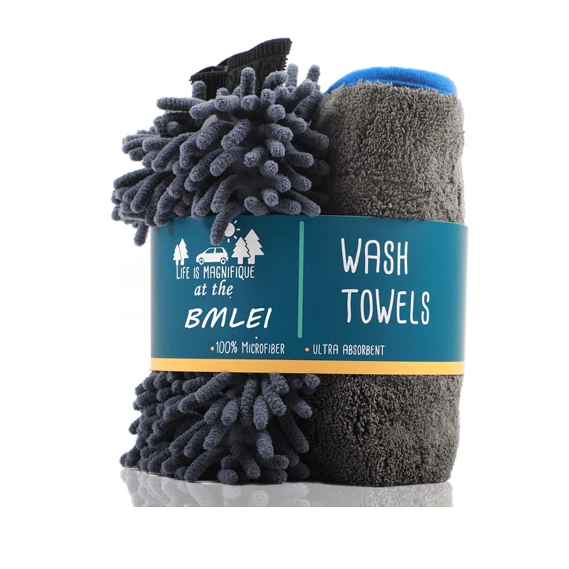 Полотенце из микрофибры с варежкой для мытья автомобиля, ткань для чистки из микрофибры (1000GSM), супер мягкое, сильное поглощение, для чистки автомобиля