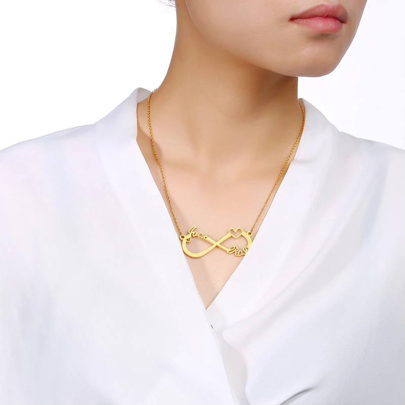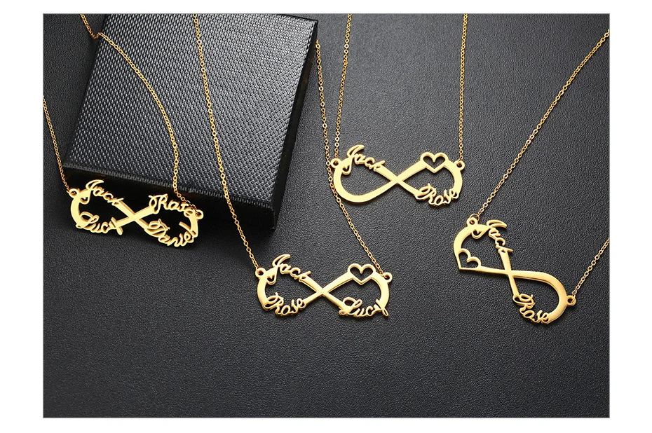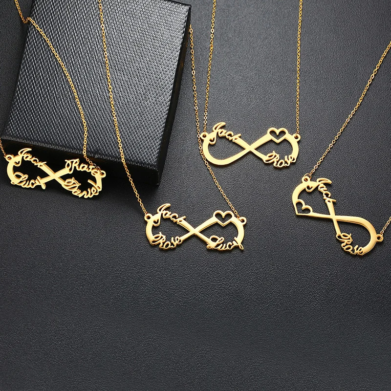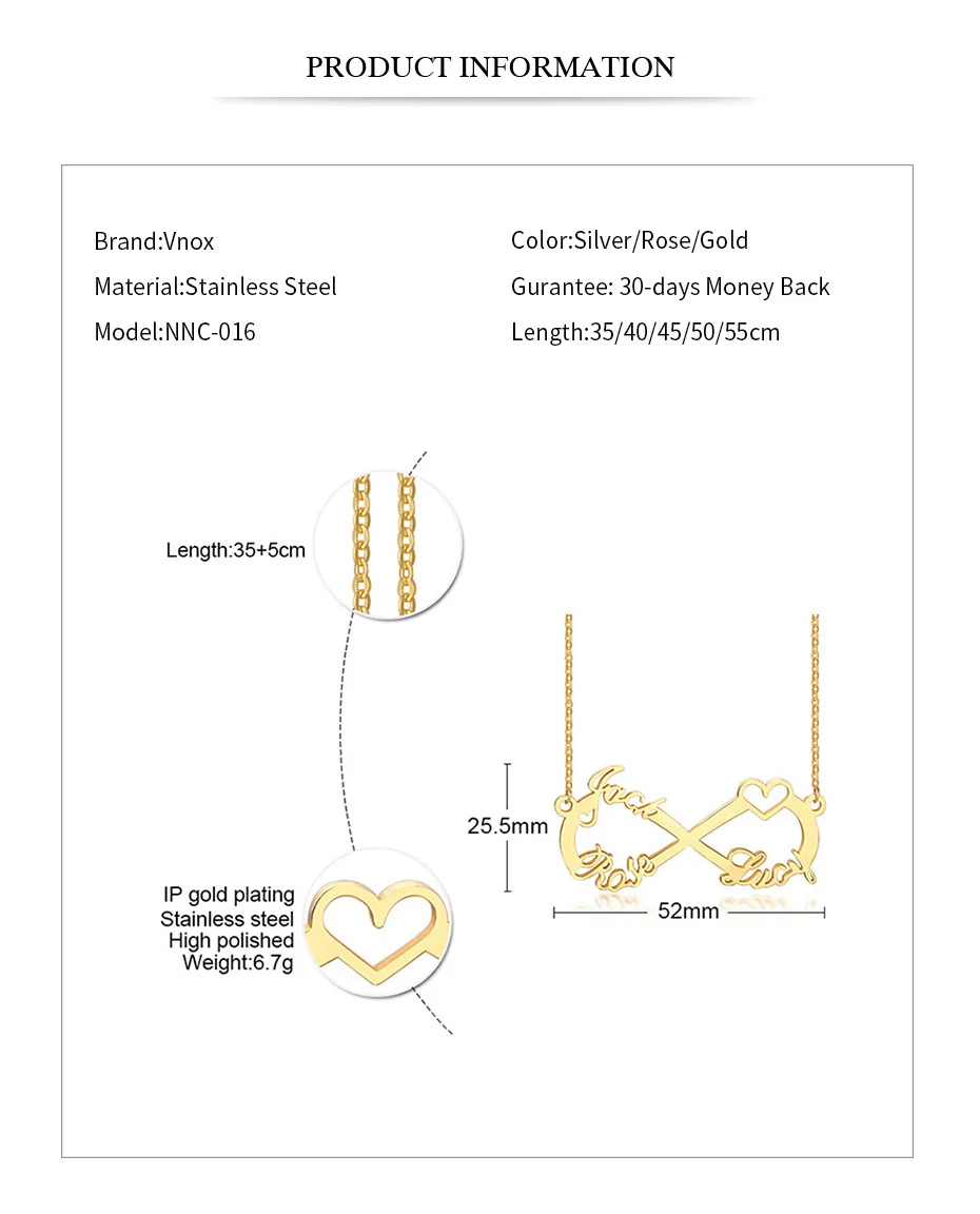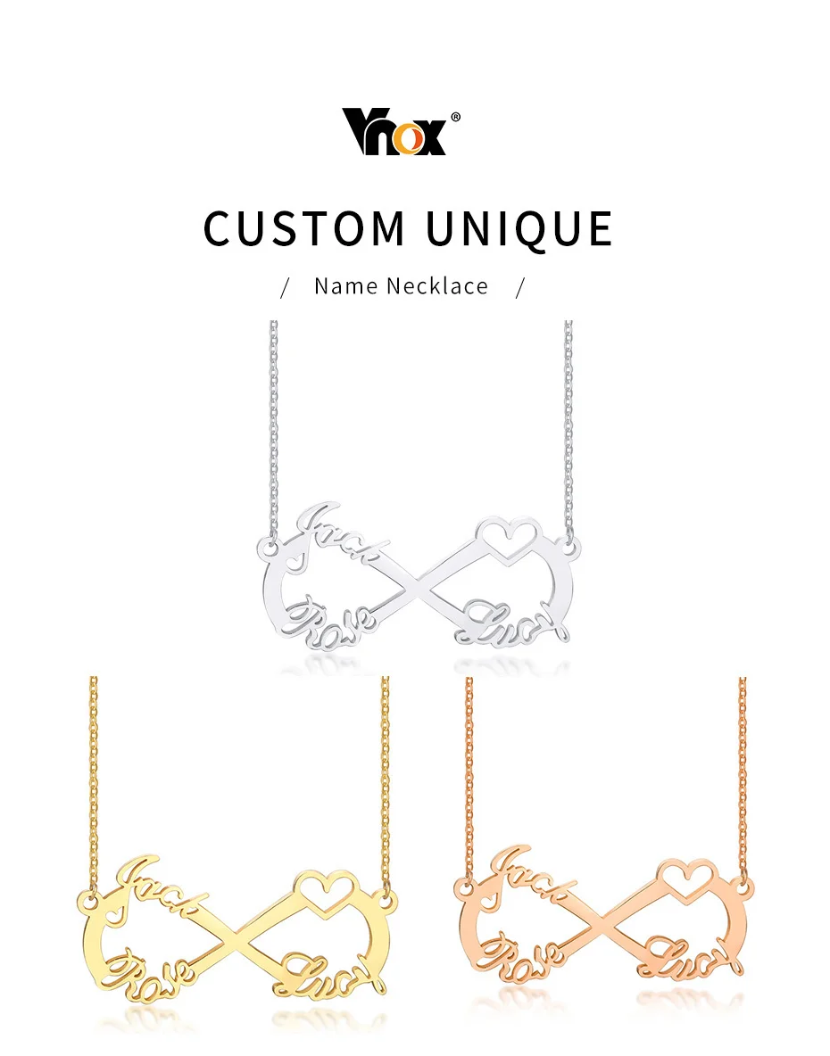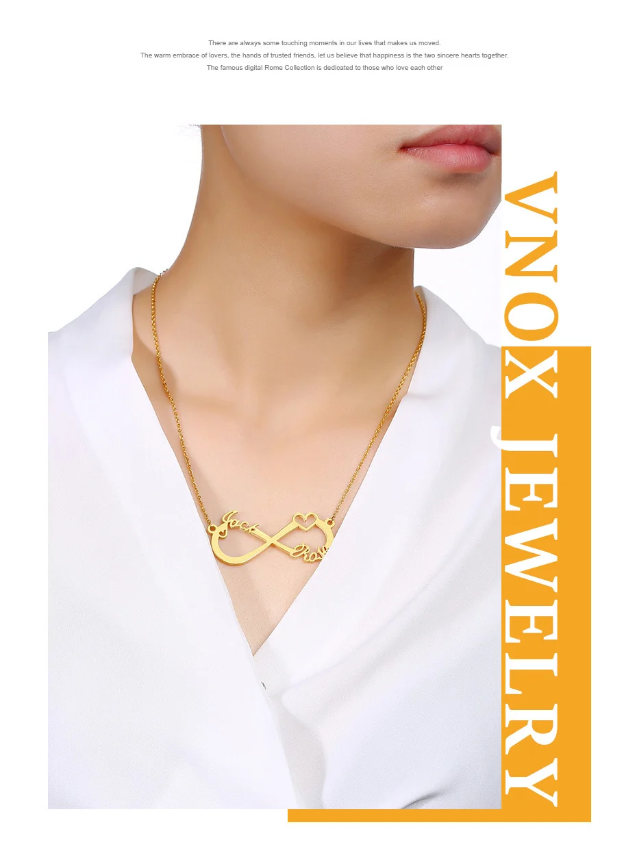 Vnox пользовательские 234 имена ожерелье бесконечность с сердцем значок Чокеры для женщин Персонализация пара Семья табличка любовные подарки