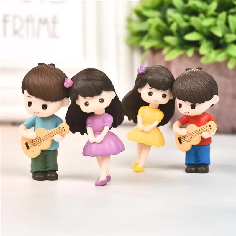 1 пара милых влюбленных парные фигурки миниатюрное ремесло с гитарой украшение для сказочного сада декор аксессуары для украшения дома
