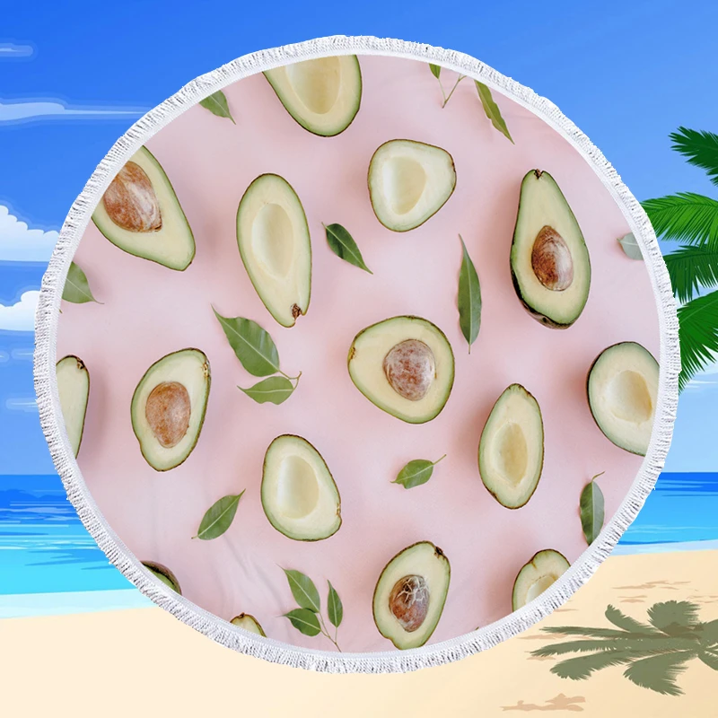 Мультфильм дизайн Авокадо печатных круглые пляжные полотенца кисточка пляжное полотенце для купания микрофибра йога Мат Открытый путешествия Пикник коврик