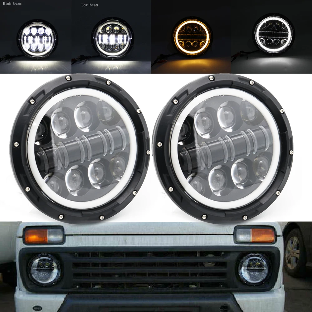Автомобильные ходовые огни, светодиодные дневные ходовые огни 7 дюймов с ДХО, задсветильник фасветильник, боковые фары, реле для Lada Niva 4x4 1995 up