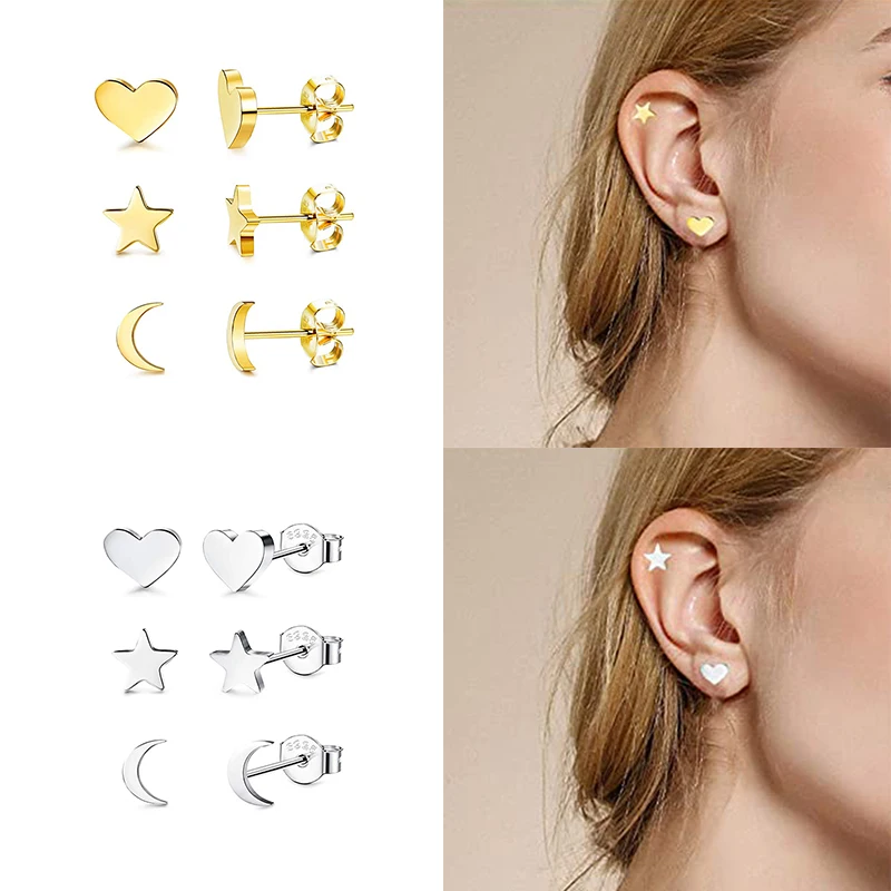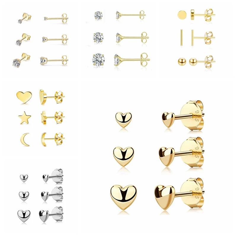 3 шт.компл. реального 925 Серебряные серьги для Для женщин небольшо...